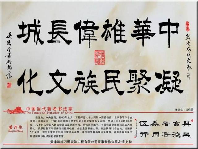 姜连生,男,生于1943年,北京人,大学学历,中共党员,北京大兴首师大附中高级教师,自幼酷爱书画,长时间利用业余时间练习。退休既入大兴老干部书画专业班学习,勤学苦练十年,毕业于2013年。现在从事专业书画创造,其作品端庄俊美,神气盎然。
