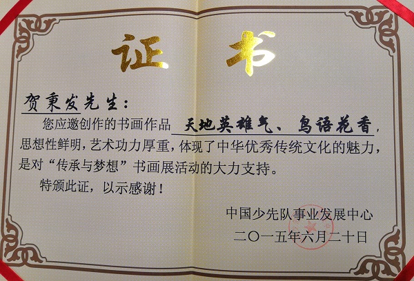 贺秉发,抗战老兵,生于1933年11月13日,著名书画家,国家一级美术师,一级书法家。现担任中国书法美术家协会副主席,国务院国史馆馆员,中国老区建设促进会著名书画家联谊会会长,中国书画学会名誉主席,中国国防大学书画教授,北京开明书画院院长,中企艺联书画院院长等领导职务。