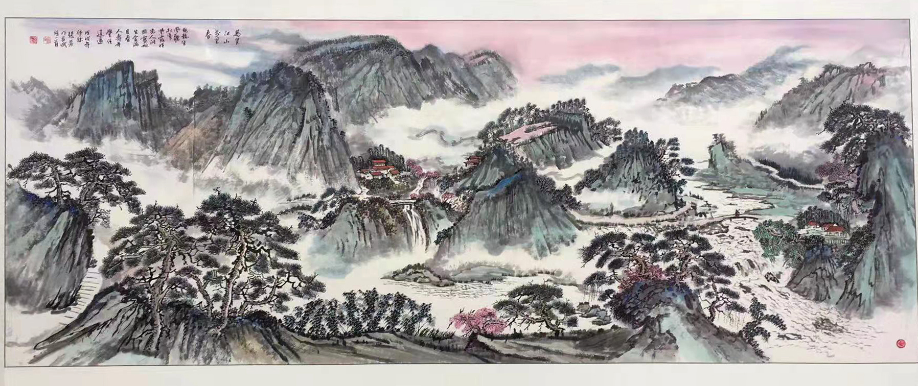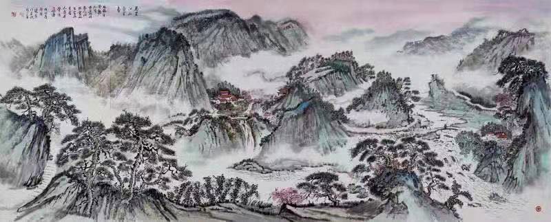 It is highly significant for us to have a deeply philosophy first, a good works requires quite a lot of knowledge from layout to completion, the entire picture requires not only perfect structure but also Fengshui concept, treasure bowl must be displayed in the picture to symbolize the profits pouring in from all sides, etc., the above are all something coming from Chinese tradition concepts, for some big works, it will be meaningless without Fengshui effect. Brushwork plays a key role in making sure to create an aesthetic structure, the quality of brushwork lines is crucial, too solid lines will look too stiff, it is a must to keep every line to be bone lines and calligraphic line, dry pen and light ink are the only way to demonstrate the essentials of basic training, each line in Chinese landscape paintings can be taken apart as the strict strokes from calligraphy, calligraphy therefore is of great importance in painting works, the dry pen and light ink make the picture clean and elegant, audiences will feel as if breathing in fresh air, while the large splash-ink never does so.