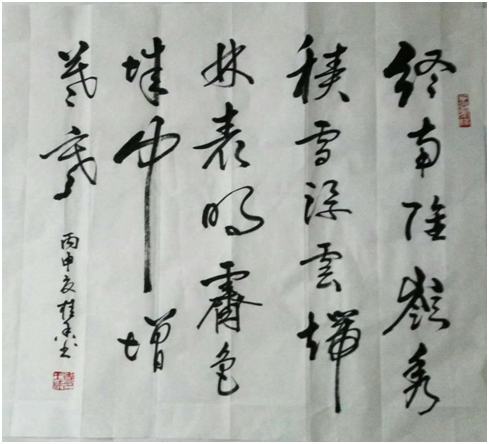 2017年,《心系祖国一带一路》对联,入选文化部文化艺术人才中心举办的全国美术人才作品展,并被收藏。