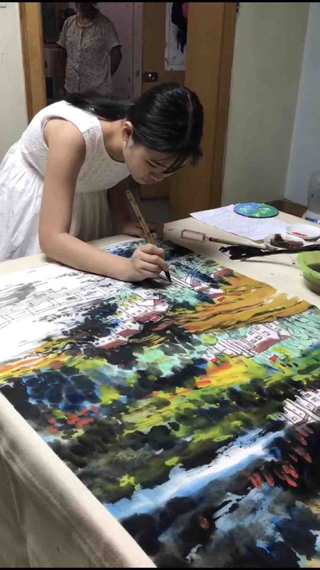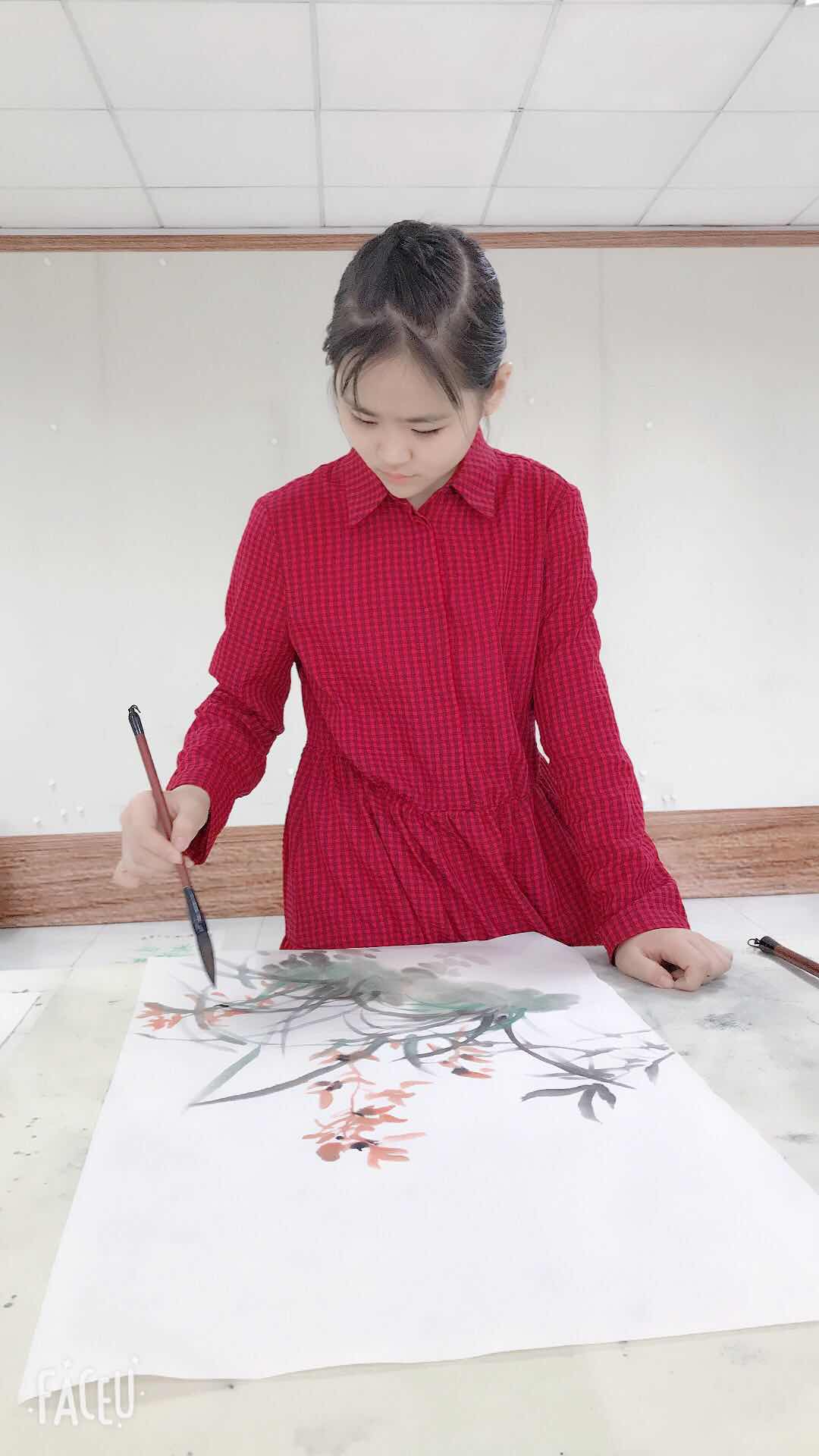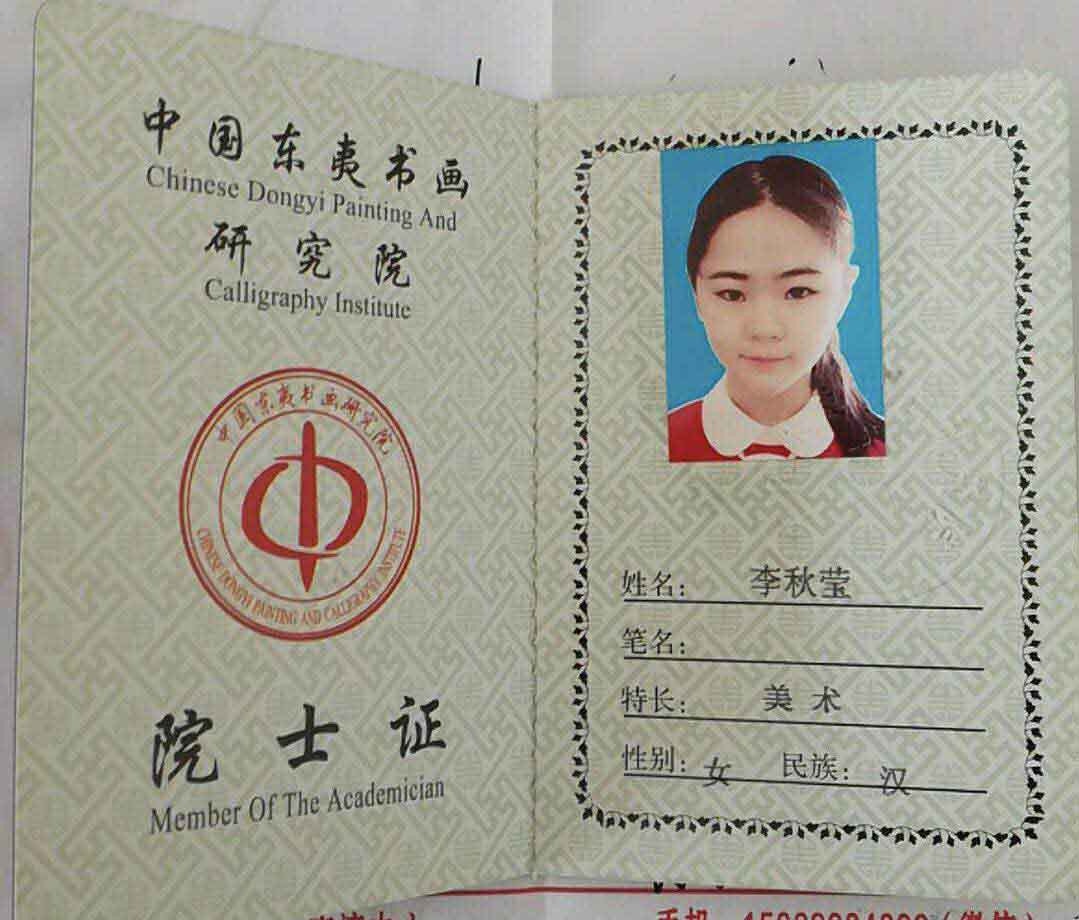 李秋莹,三岁习画,四岁起参加"星星河绘画比赛",连续8年获金奖,每年都在人民大会堂接受嘉奖,擅长国画写意,油画水粉,素描素写,幼时得美院薛丽丽老师指导,后由山水大家黄宾虹正承许南湖入室弟子王崇周先生为师,并赐号崇玉。目前拜师为齐派第四代弟子,李海峰门下。李海峰为中国美术学家协会会员,美术家协会副会长当代著名画家,后由马洪琪老师天津美院毕业,曾参加建国15周年全国美展油画巜人民领袖人民爱》和年画《焦裕禄》出版发行,现由谷保荣北京美协会员曾两次入国展被《美术报》评为具有发展力的画家,具有梅花一样的品格,历尽寒霜仍傲雪。在各位恩师的指导下,李秋莹练就了自己独特风格,并取得优异成绩。不但画画成绩斐然,现在尚不足十五岁的她还是个名副其实的小学霸,凭借出色的学习成绩被北京十一学校录取,又因心中的梦想来到清华附中,在学习之余举办画展,用画展收入帮助有经济困难的同学,用品学兼优来评价她最恰当不过!