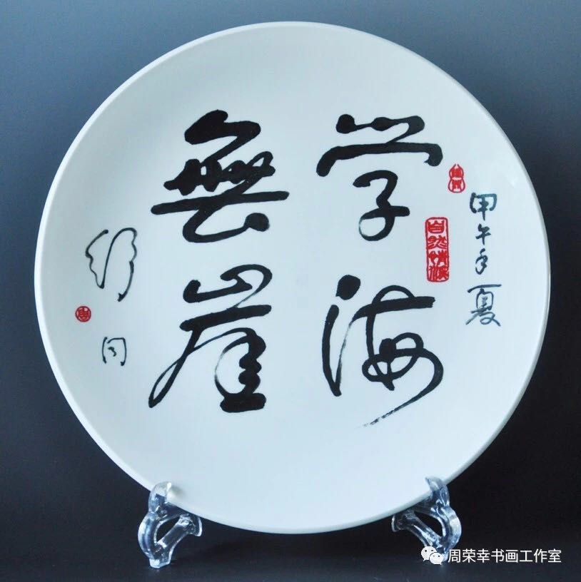 2008年到景德镇陶瓷美术学院学习陶瓷书画,购买电窑和陶瓷书画用品,创作了一批瓷盘书画作品。