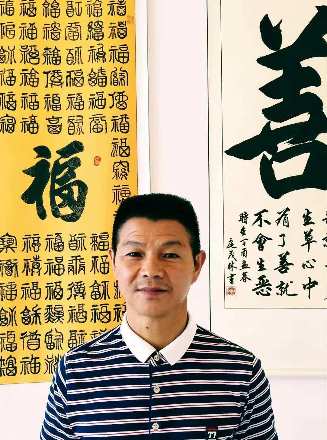 庭茂林(曾用名庭永鸿),男,现年48岁,1969年9月出生于贵州省贵定县昌明镇的一个普通农民家庭。受祖、父辈文化的影响,自幼热爱文学、书法,经常帮助乡邻书写各种文书、契约、证明、申请、对联、墓碑等。