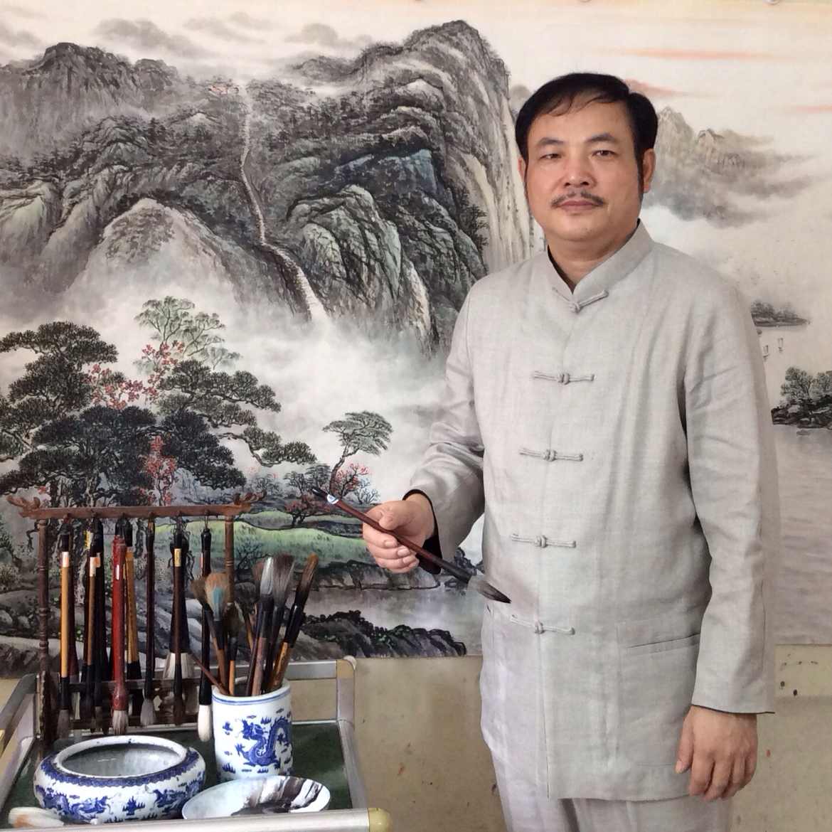 山水画家清风,自幼习画,几十年耕耘不辍,博釆众长。八十年代早期师从中央美院兼中国书画函大教授白雪石、梁松年、姚治华等,通过汲取历代名家精华,“外师造化,中得心源”,以诗意精纯的笔墨,写就了一幅幅高远旷古、苍茫雄浑的山水画卷,深得人们喜爱,引起中外收藏界的广泛关注。