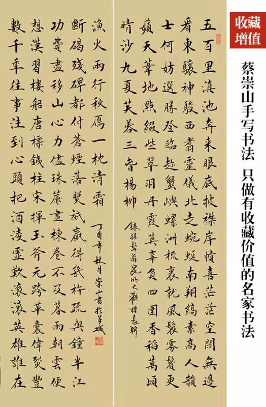 2017年 经国家文物局中国书画收藏家协会暨中国书画藏典编辑委员会专家认定,蔡崇山书法作品每平尺1000元(小楷精品3000元)