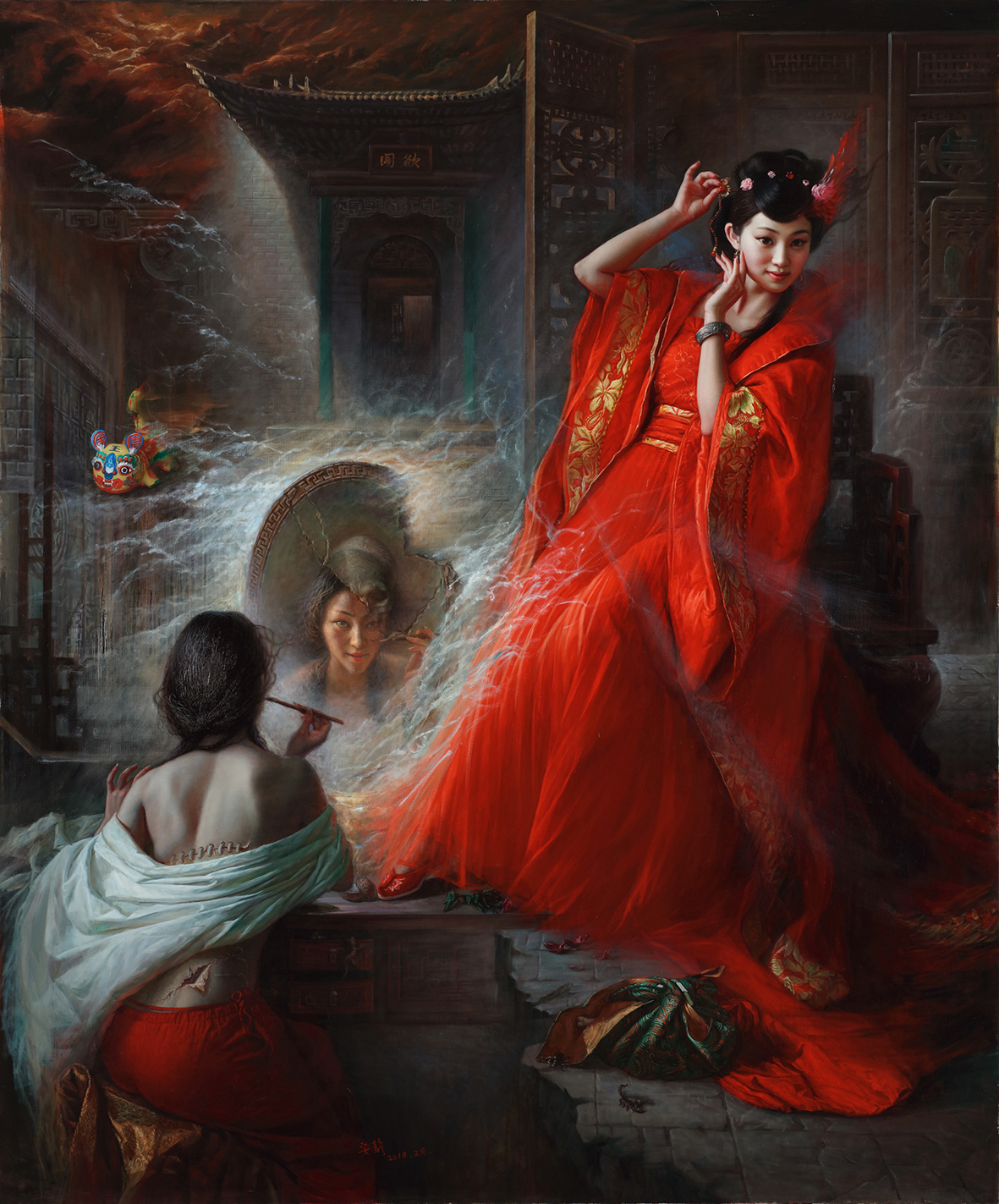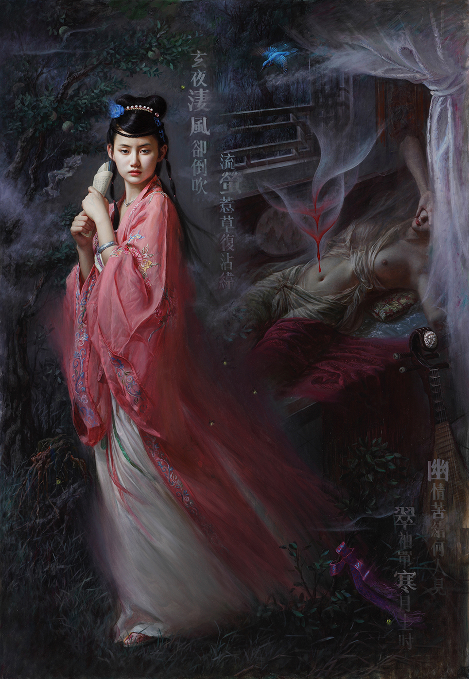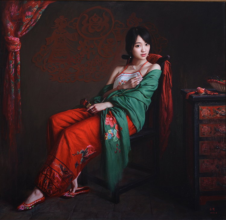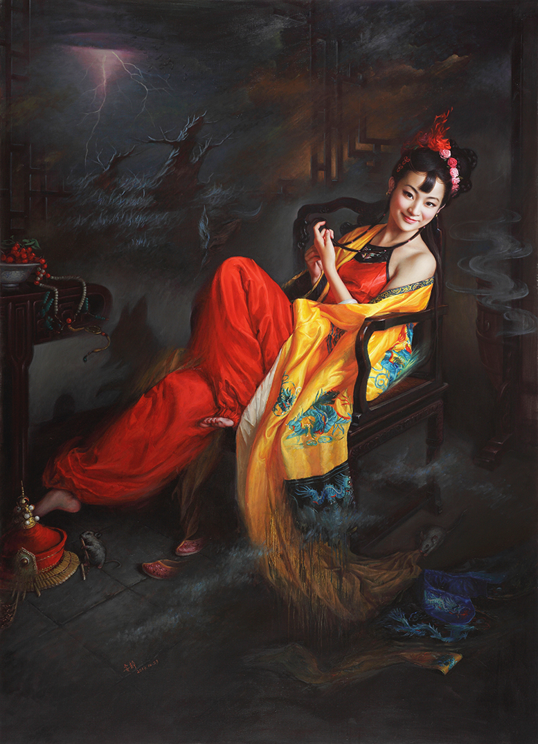 2013年4月作品《易逝的春》《女红——怡情》参展香港“后现代主义、新当代艺术”油画展。(香港云峰画廊)