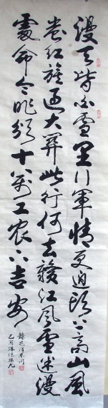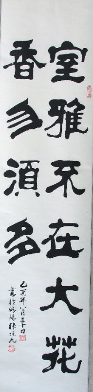 张振九先生生于书香门第,幼承家训,遍研古碑贴,博采古今众书家之长,其书法作品,运笔流畅,结构严谨,笔法洒脱;其字形苍劲有力,厚重大气,有拔山举鼎之气势!其章法布局合理,一气呵成,可谓:‘’形、神、骨‘’尽出!尽承颜柳之风,袭米黄之气,法昌铎之骨,效二王之神;不蔓不妖,观之有芝兰之正气,赏之有梅花之傲骨!真可谓:铁骨铮铮,铿然有金石之声,观之,如行云之流水,似无弦之韵律!潇洒恢宏,意境悠远,让人心旷神怡之感!彰显其极高的书法艺术造诣!