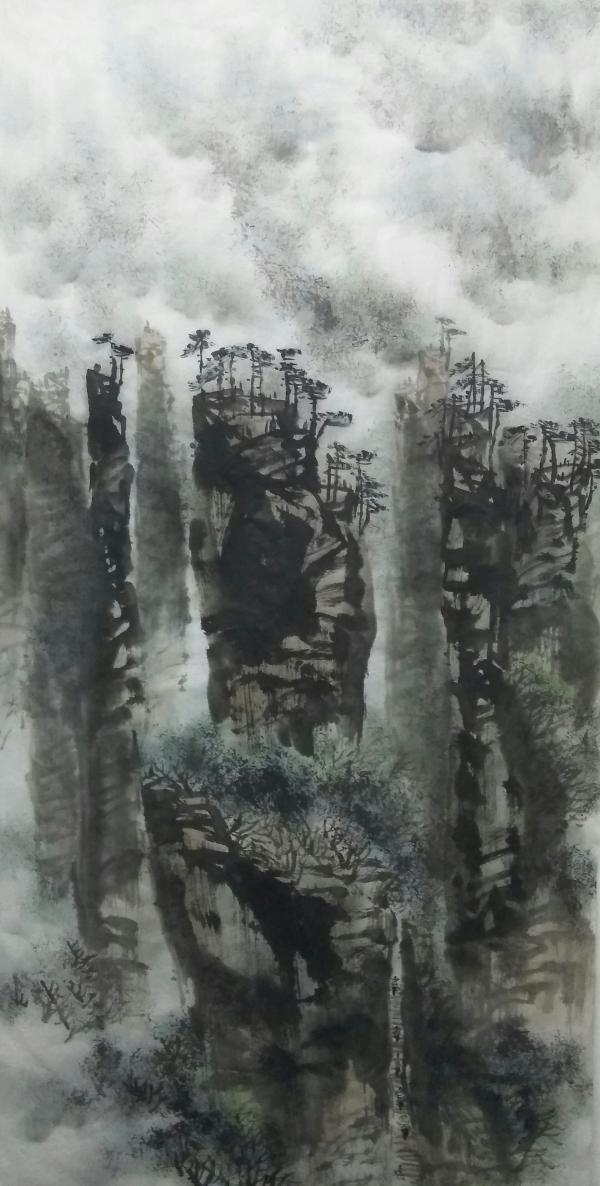 作品以描绘湖南张家界武陵源为主,师法自然,力表胸意。