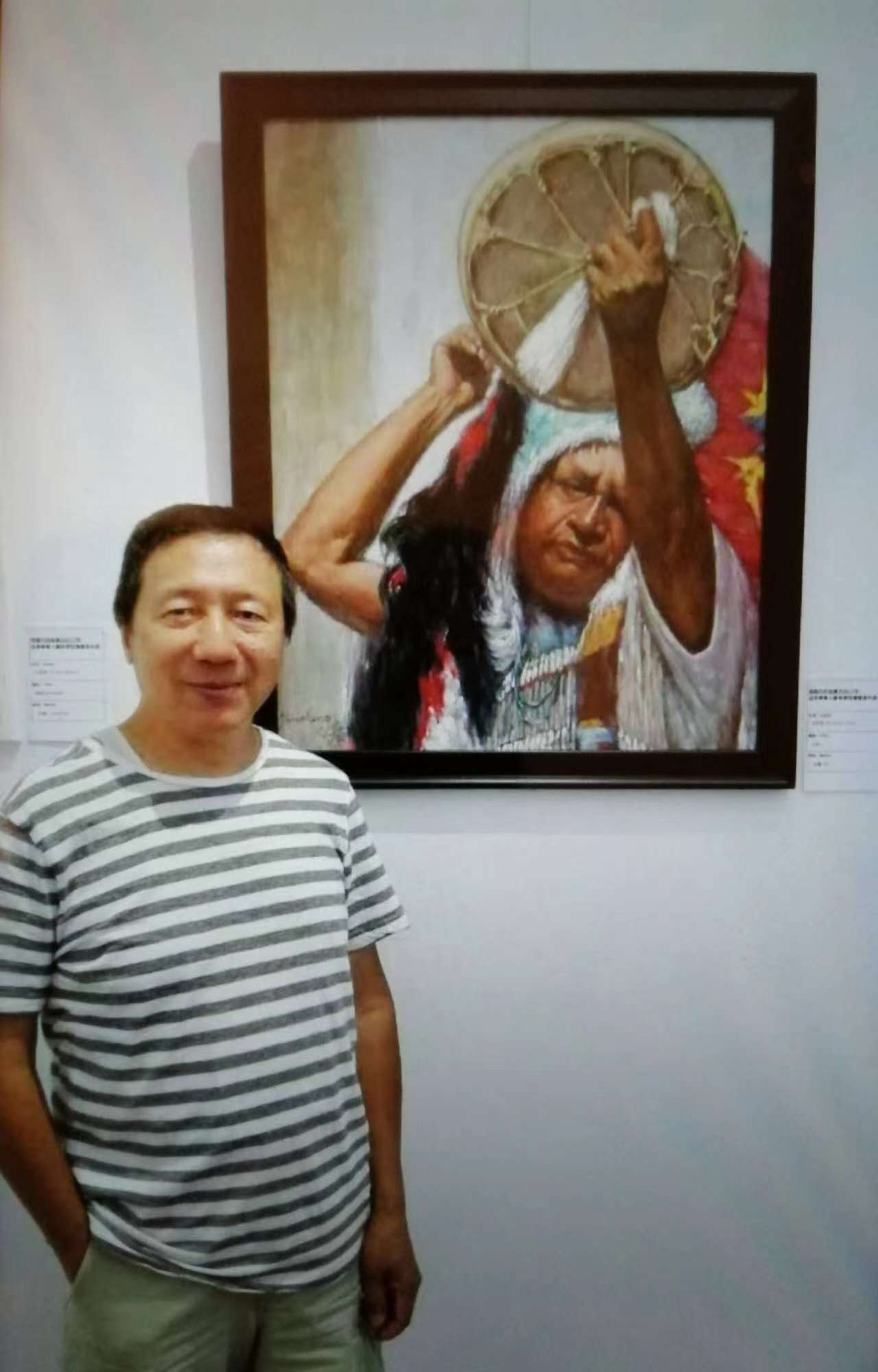 和本地华人艺术家程树人合影于艺展