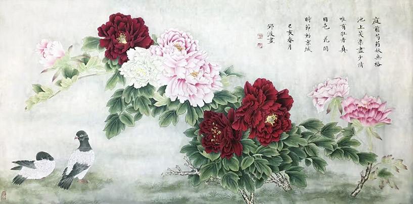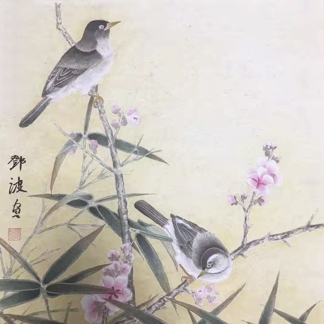 邓波,笔名:潇雪,婉茹, 上海人,祖籍四川省洪雅县,一级美术师。自幼酷爱美术,钟情书画,师承郭伟等名家学习书画,至今笔耕不缀、潜心钻研,逐渐形成自己的艺术风格。专攻工笔花鸟、工笔鹅卵石、工笔人物及写意花鸟兼攻山水。