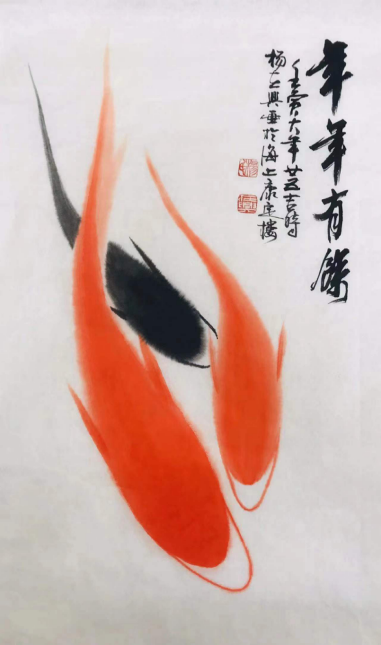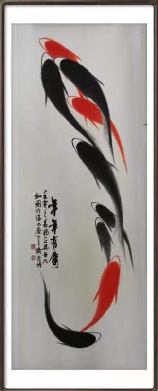 他的水墨大写意作品“年年有余”为世人瞩目,被荷兰美术馆收藏,——画笺上除了鱼儿几乎是一片空白,没有水草的点缀,没有水的涟漪,几笔泼墨却勾画出了鱼儿水中游动的飘逸与灵气。