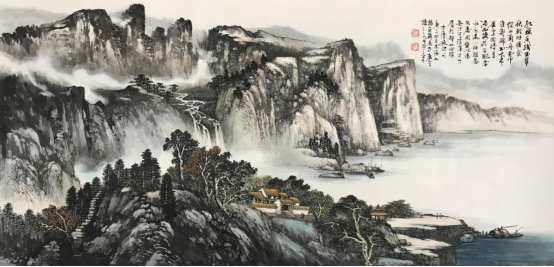 杨在兴,1947年生,上海人士。幼时拜“江南猫王”陈莲涛先生为师,勤学中国画,擅画花卉、山水、翎羽、走兽,尤擅长绘制鲤鱼,成为海派一脉。绘山不仅须知丘壑之生物、林木、流泉、雾霭之通灵等理念,还需潜心研习前人之绘画精华。作画者必习字,习字者必懂画。杨在兴将书法之用笔、运笔运用到大写意国画创作中,并在绘画构图中辅以书法长款题跋,使二者融为一体,相得益彰。正所谓细微之处见精湛,整体之中见气运,推动了海派中国画的发展。