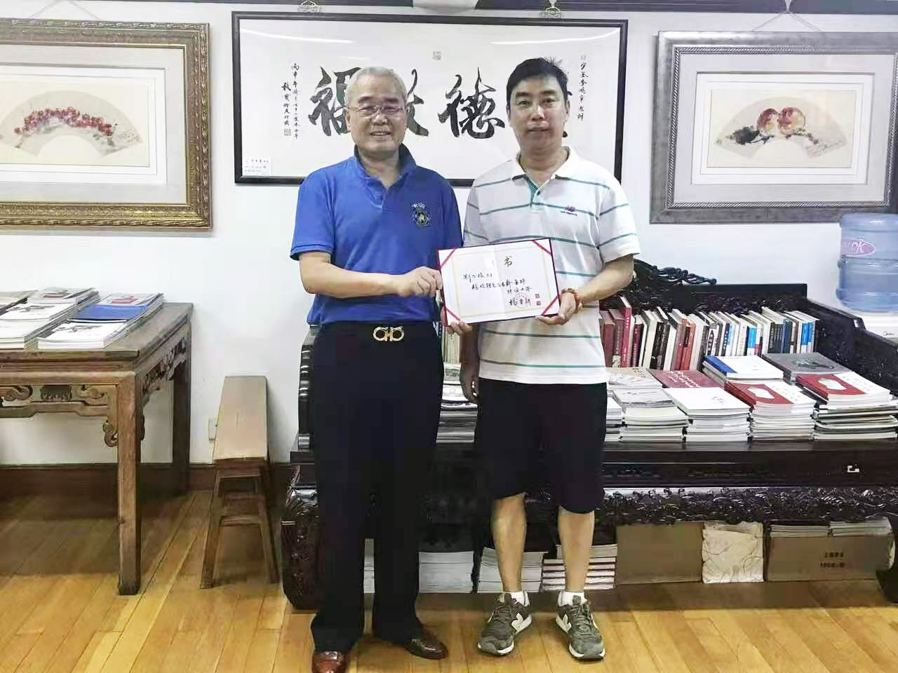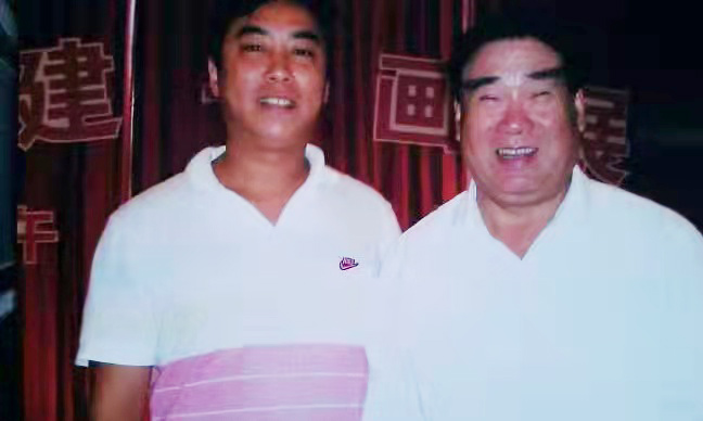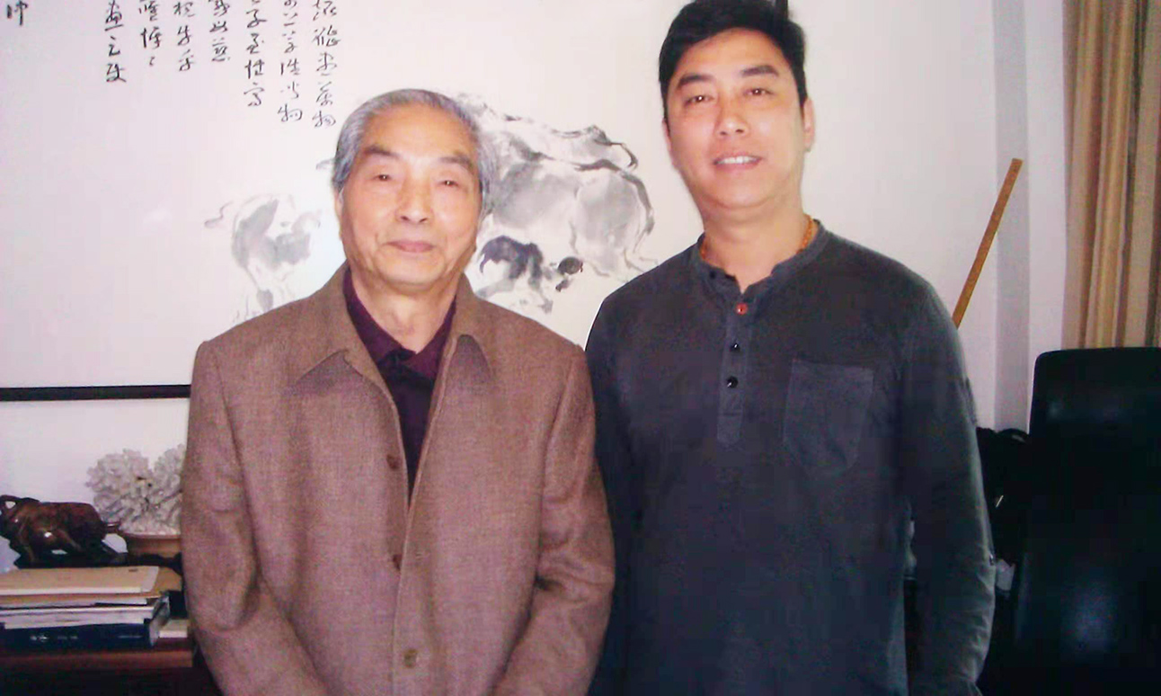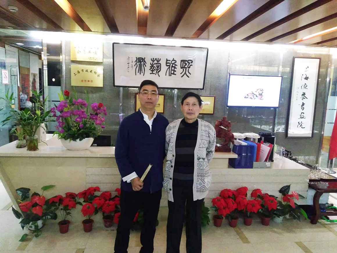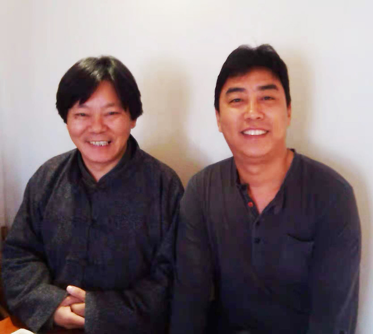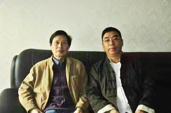 和上海著名画家程十发弟子赵竹鸣(右)合影