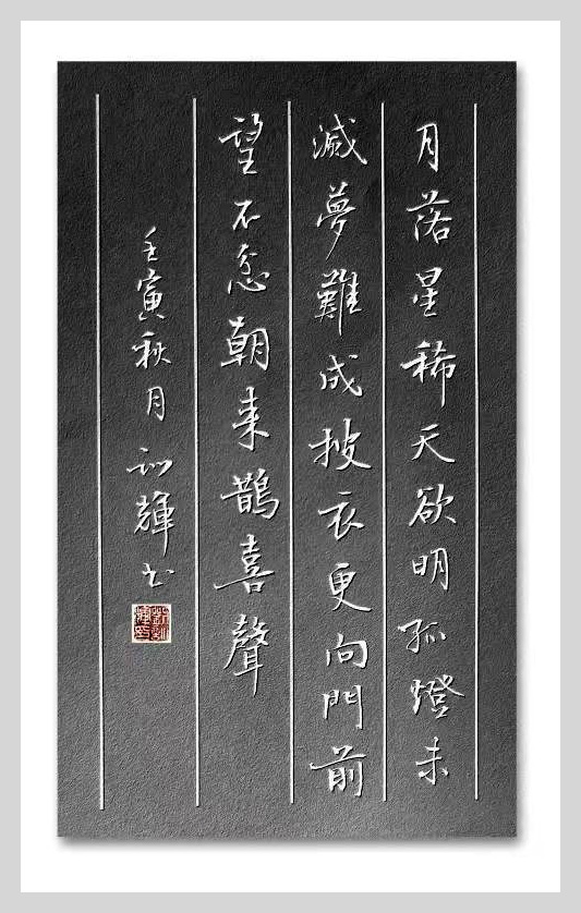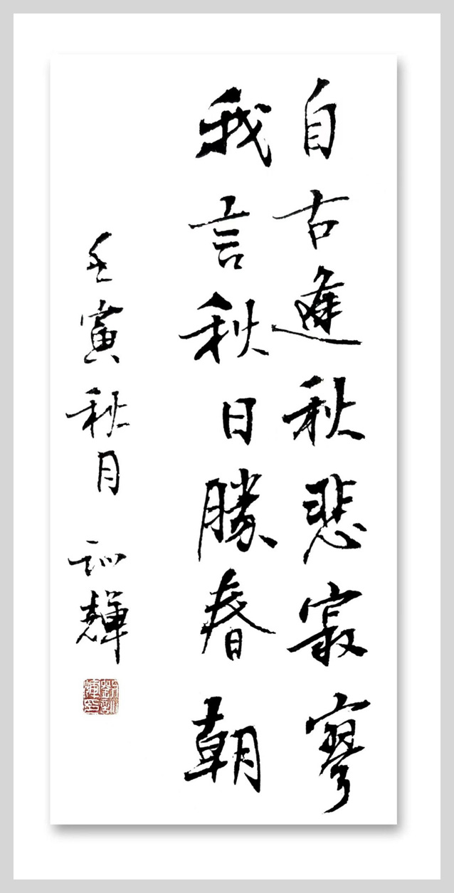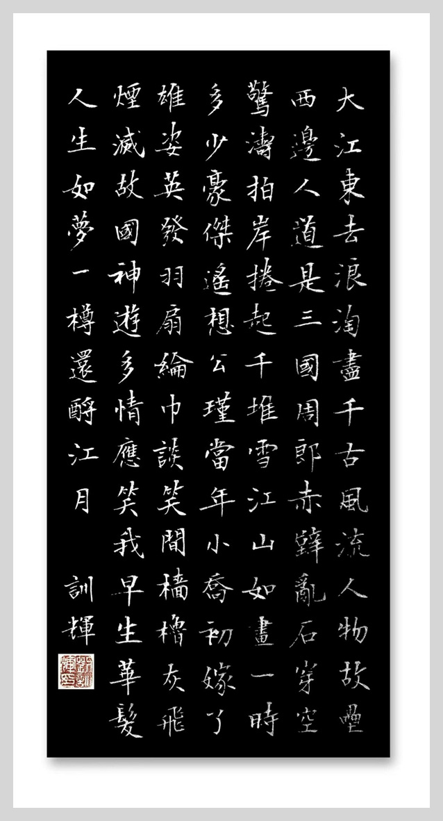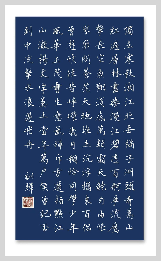 姓 名:刘训辉性 别:男出生日期:1975年8月籍 贯:重庆云阳刘训辉,男,汉族,1975年8月出生,重庆市云阳县人,曾在驻洛某部服役,河南省洛阳市书法家协会会员。自幼爱好书法,利用课余时间,认真临习王羲之《兰亭序》、文征明《草堂十志》、《琴赋》《千字文》等帖。曾多次在参加军队和地方的书法比赛,并获得荣誉。