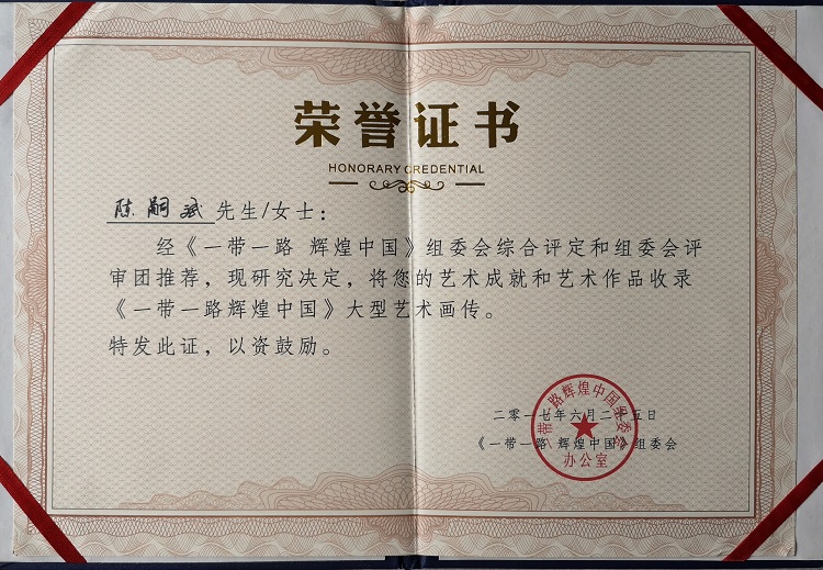2017年度国家文联出版的“一带一路辉煌中国”大型史册画传一书,收录了陈嗣斌个人简介和书法作品。