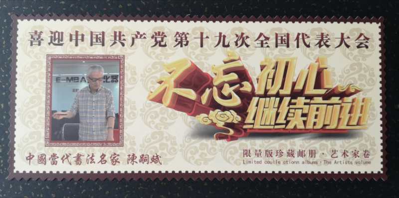 2017年度中国邮政、中国国际集邮网、中国大众文化学会将陈嗣斌的书法作品印制成“喜迎中国共产党十九次代表大会”珍藏邮册而公开发行。