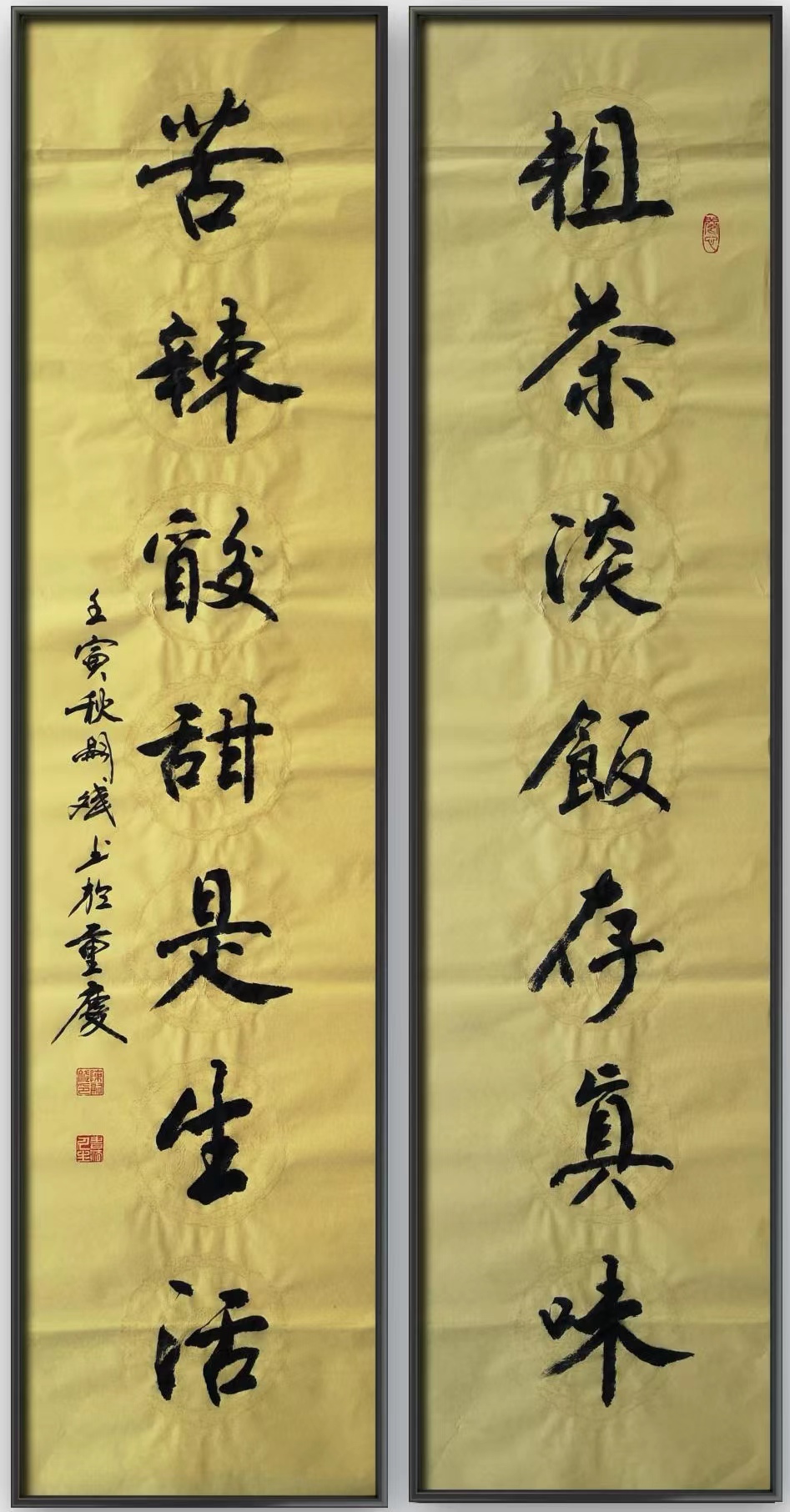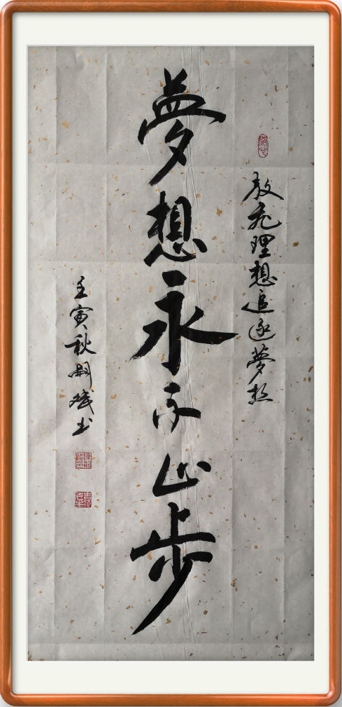 陳嗣斌老師的書法,繼承了傳統,但又不復製傳統,形成了自己獨有的藝術風格和藝術韻味。每當品賞陳嗣斌老師的書法作品時,他那大開大合、寬博舒展、沉雄豪邁的用筆風格,總是給人氣運通達、胸襟開闊的感受;他那灑脫飄逸的綫條取舍,總是讓人心情舒展而恬靜;他那圓潤厚重的字体,總是有為人厚道做事踏實的領悟;他那骨氣洞達、遒勁的筆鋒 ,總是給人剛直不阿、積極向上的力量。