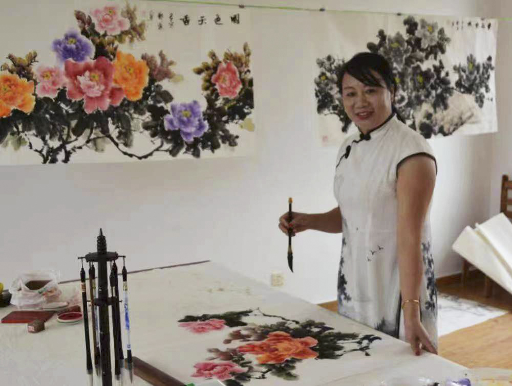 郑萍,女,重庆市人,是王雪涛再传弟子,王雪涛儿媳温英的得意门生,以牡丹最为著称,作品《如意牡丹图》是全国获金奖作品。