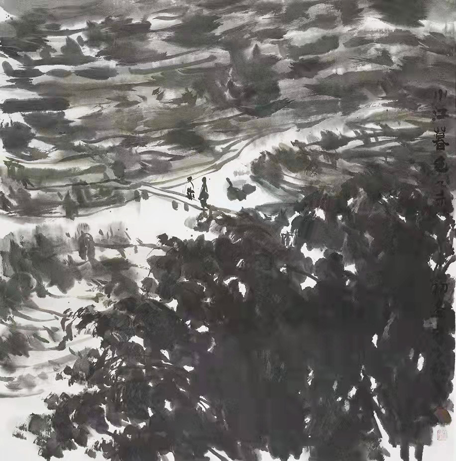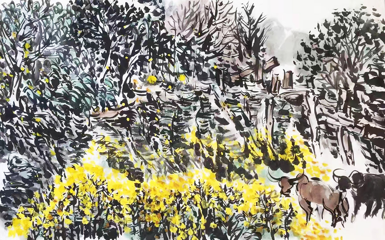 作为21世纪的当代画家,寇子皓先生的艺术观与思维方式是与时代同步的。他强调了对生活的深入与观察、突破了传统写意中国画的程式规范,在回归了部分传统文人画的内涵和气质的基础上,由高雅趋向亲近人生的现代性转化。这种转化与古代文人避世、隐逸的超尘已拉开了距离,而与改革开放新时代崛起的民族之魂魄取得了共鸣。他的画,气相搏大沉厚,与中国辽阔的自然景观相契合;他的画豪迈壮美,与当代人民昂扬奋发的精神面貌互为表里。他的艺术创作以传统笔墨、现代意蕴、绵绵深情的艺术个性确立了他在现代中国画坛上的坐标。在大写意创作中,艺术成为他事业的追求和精神寄托,也成为他对艺术的永恒责任。看来,无止境的倾注和求索,将伴随着他的一生,愿他为我们的时代奉献更丰硕的成果。