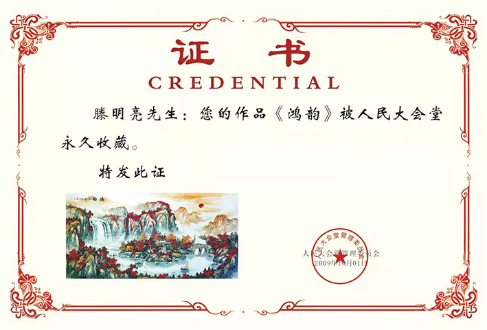 2009年 作品《鸿韵》被人民大会堂收藏。