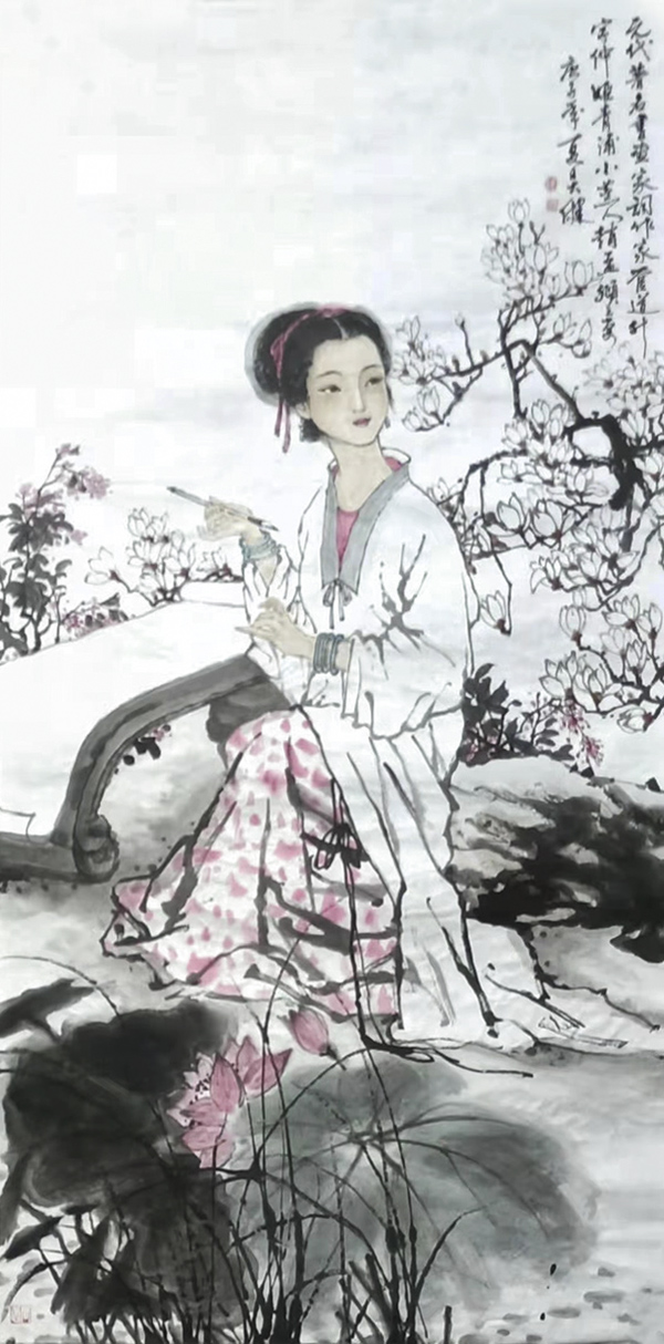 一眼望去,他的二十幅四尺整张作品,大气、清新、自然,笔墨松驰有度,人物栩栩如生,给人以艺术的享受。