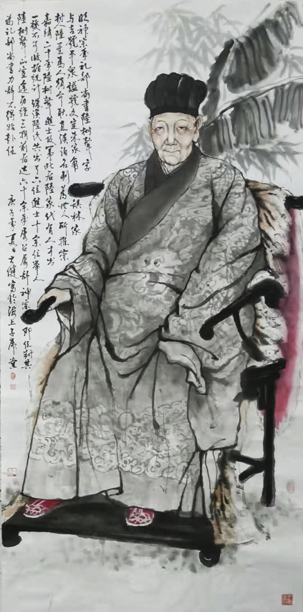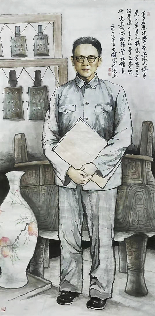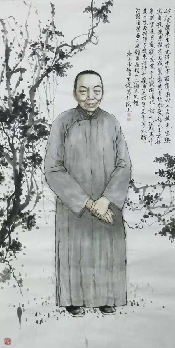 中国东晋顾恺之的《女史箴图》当为传世的中国早期以组画形式出现的卷轴画,而《女史箴图》一共十二幅。中国美术史上独立意义的组画样式是直到20世纪30年代才由鲁迅推动出现的。大健说自己在画这组画时,除了反哺和回馈,真的没有多想过其他。但是我想,他的这一组二十多人的名人画,也是创青浦画家历史之最的,是史无前例的。