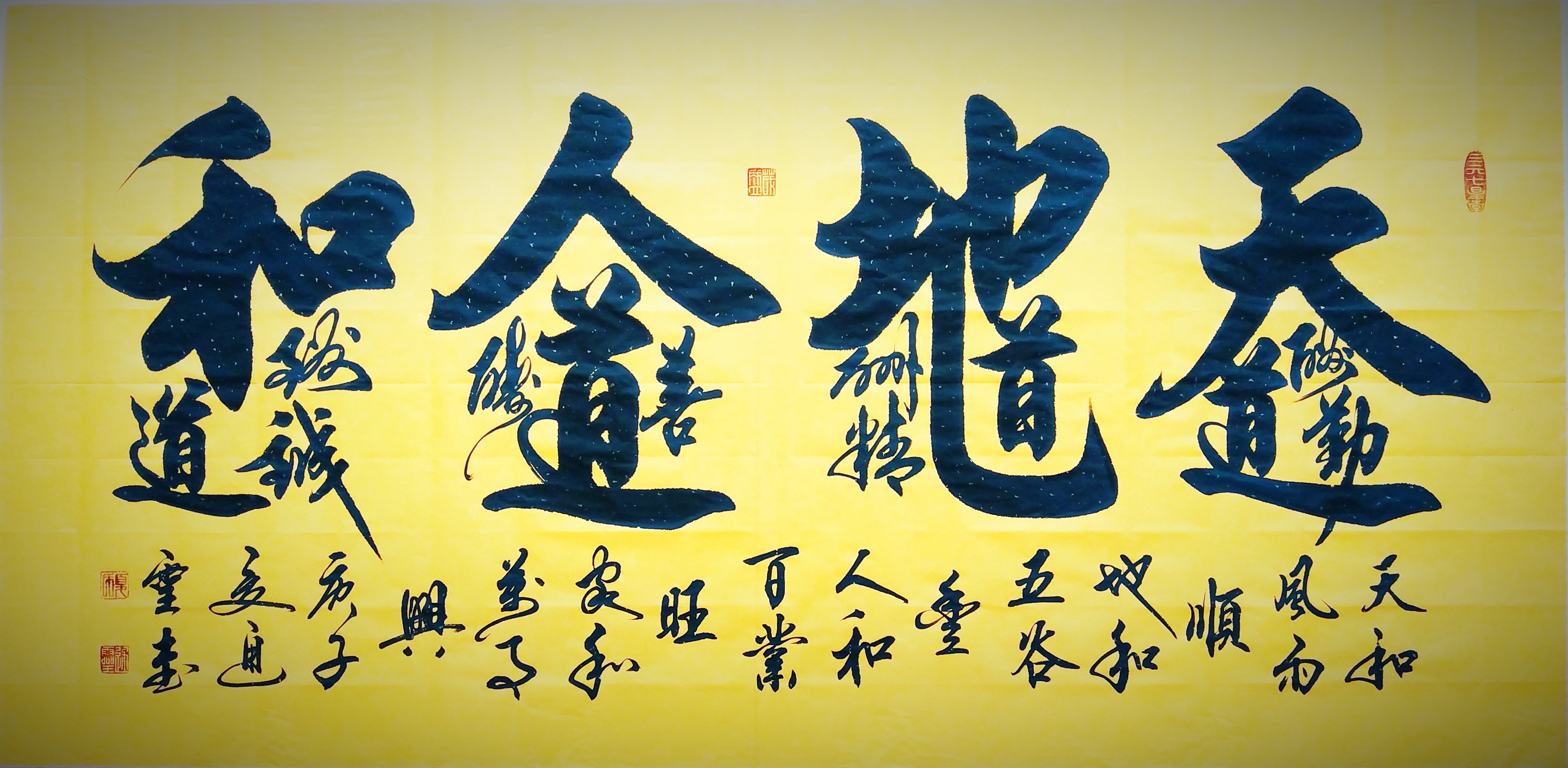 2018年创了通灵书画院,被中央电视台CCTV授权为国礼创作基地!中国国际书画艺术教育培训基地!中国楹联学会夏道胜书画艺术工作室,中国首批文化名人书画工作室!全国少儿美术技能测评基地,2019年在北京参加了不忘初心易学风水研讨会,2019年被评为易经行业影响力人物,2019年书法作品参加“园丁颂——曼谷行”展出!2019年作品“精气神”“临江仙”“中国梦”又被马来西亚办公厅永久收藏!2019年8月参加翰墨飘香,多彩华夏暨全国书画作品展,2019年12月在福州参加了第三届世界非遗文化展,等!多次参加国展和各地书画展活动,被誉为实力派书法家。作品被邮政和各大媒体生产邮册和刊物发行!各大报刊和大型文献书籍全国发行!国家图书馆和全国新华书店展示销售!作品被人民日报社选做台历和楹联学会选做新春礼包发放到各大机关!作品被各界人士收藏,作品润格为3.2万元至3.6万元每平尺!
