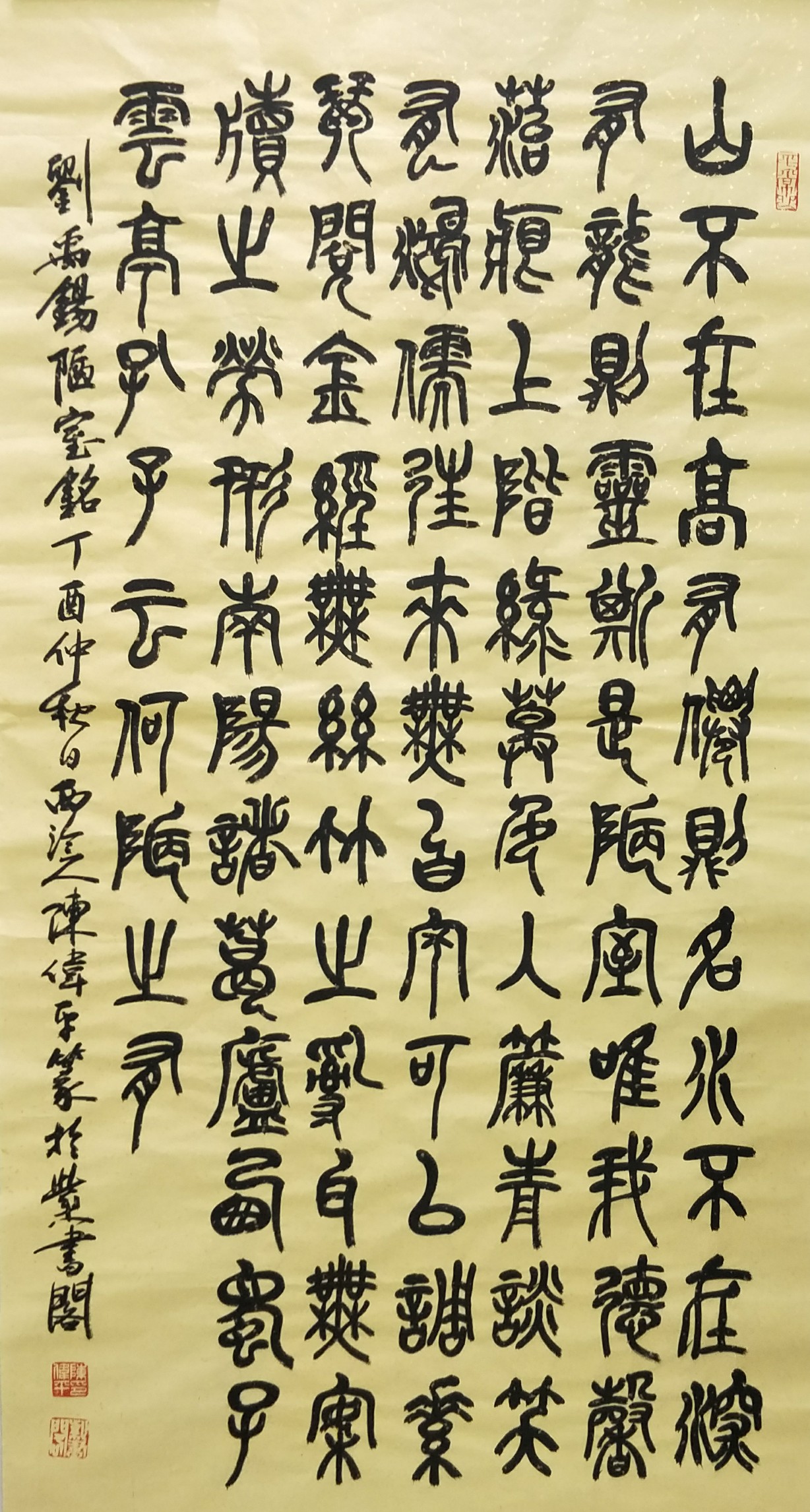 陈伟平,字广仁,号印壇斋主,上海著名书法家,西泠印社社员。1955年生于大连市,1995年进入上海西泠印社从事书画印泥研制工作。师从上海书画名家张森,王个簃,黄迈人研习篆,隶,石鼓文。并得西泠印社书法篆刻家李文骏,吴天祥先生指点。书法作品2001年参加上海市新人新作书画展。2009年参加中国策划协会书画展,并获金奖。2012年篆书作品《春华秋实》编入中国将军书画作品集。2013年作品入选上海市第三届篆隶书法展。2018年11月,参加安徽省古文化博物馆举办的“海上四家”书画联展。2019年5月,被国家文化部评为“一级书法师”(证书编号:YJSF01000530G)。
