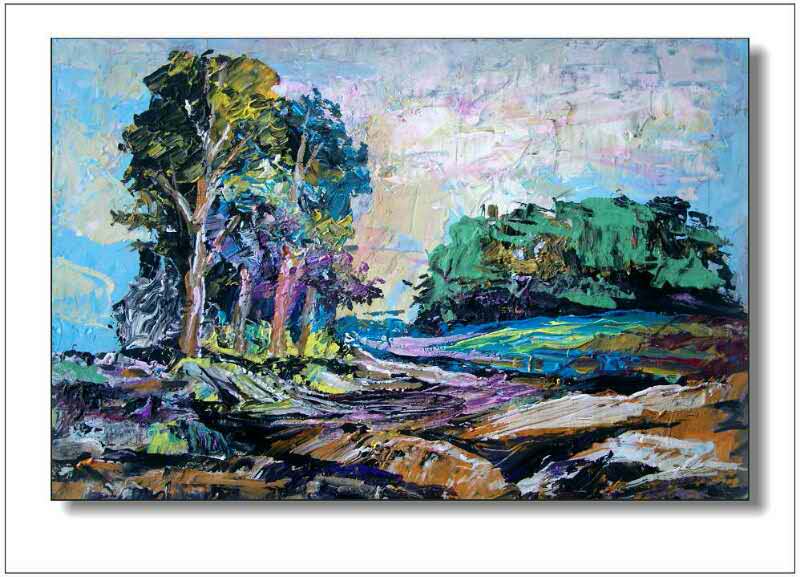 纵横于书法、国画、油画、水粉、瓷艺等。艺术表现手法多样,常游走于抽象和具象之间,尤其在山水题材上