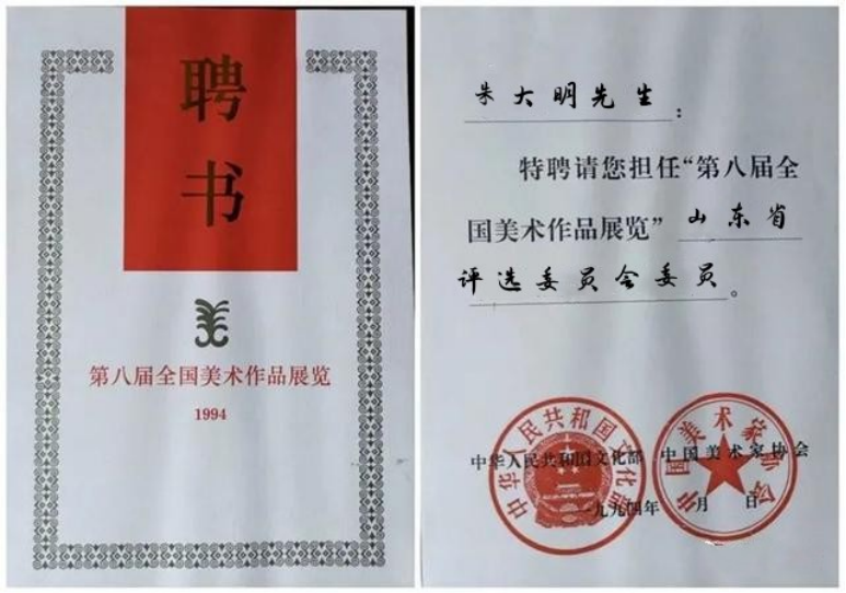 第八届全国美术作品展览,朱大明被中华人民共和国文化部及中国美术家协会聘为“山东省评选委员会委员”,而成为全国美展的评委,则更加说明朱大明老师的艺术造诣已经远超一般的艺术家。