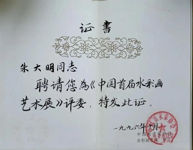 朱大明被聘为“中国首届水彩画艺术展”总评委——中国美术家协会水彩画艺术委员会