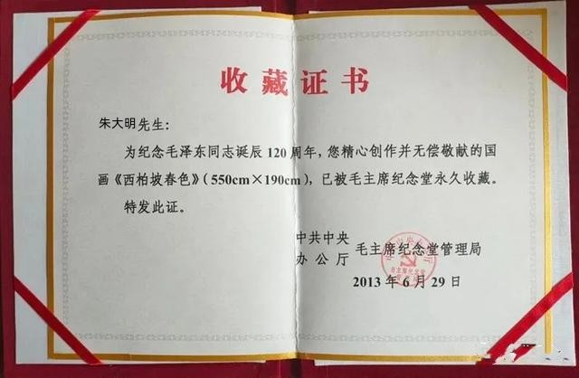 中国美术馆、天安门、中国美术家协会、毛主席纪念堂、人民日报神州书画院、中共中央国家机关工作委员会紫光阁画院、山东日报社、台湾文化中心、炎黄艺术馆等均收藏朱大明老师的作品。