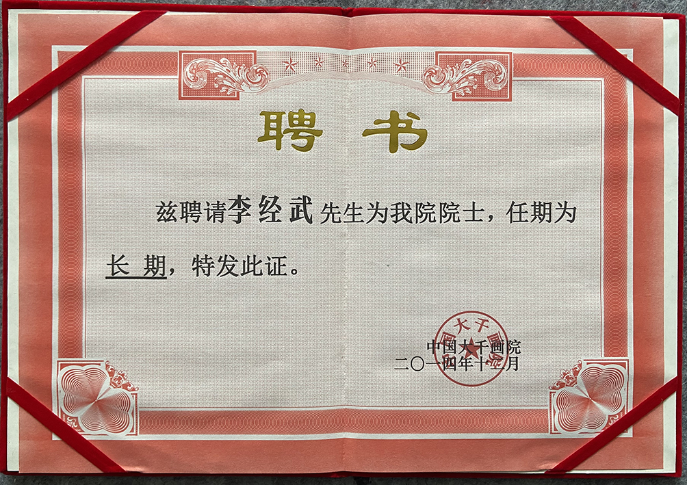 李经武先生被誉为“中华牡丹王”“中国现代山水画巨匠”“王羲之再传”全国美展评委导师,清华美院客座教授,荣宝斋特约书画家。