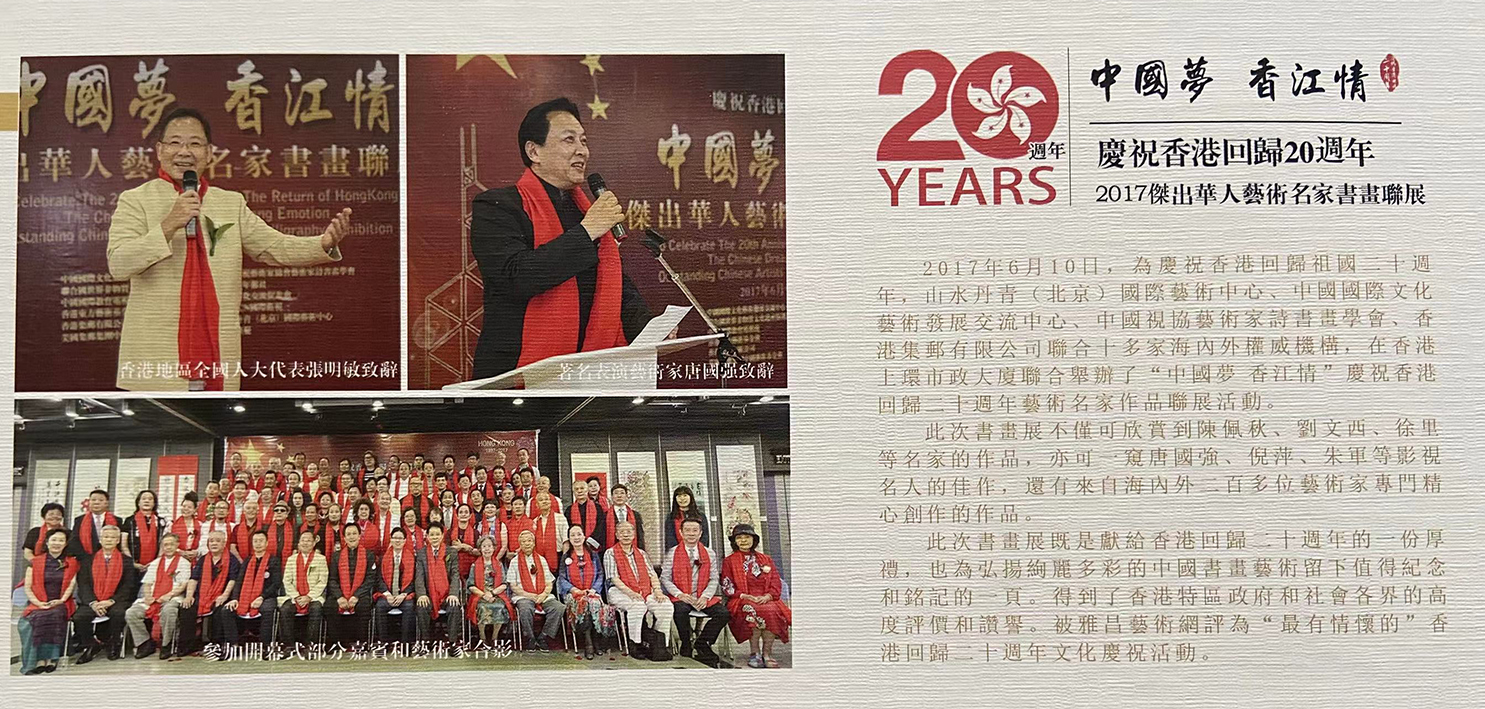 2014 年法国总统奥郎访华作品《源远流长》作为国礼相送,得到了领导政要们的高度赞扬,多幅作品被人民大会堂,钓鱼台国宾馆,国家博物馆,中国美术馆,各驻外大使馆等重要活动中心悬挂收藏;