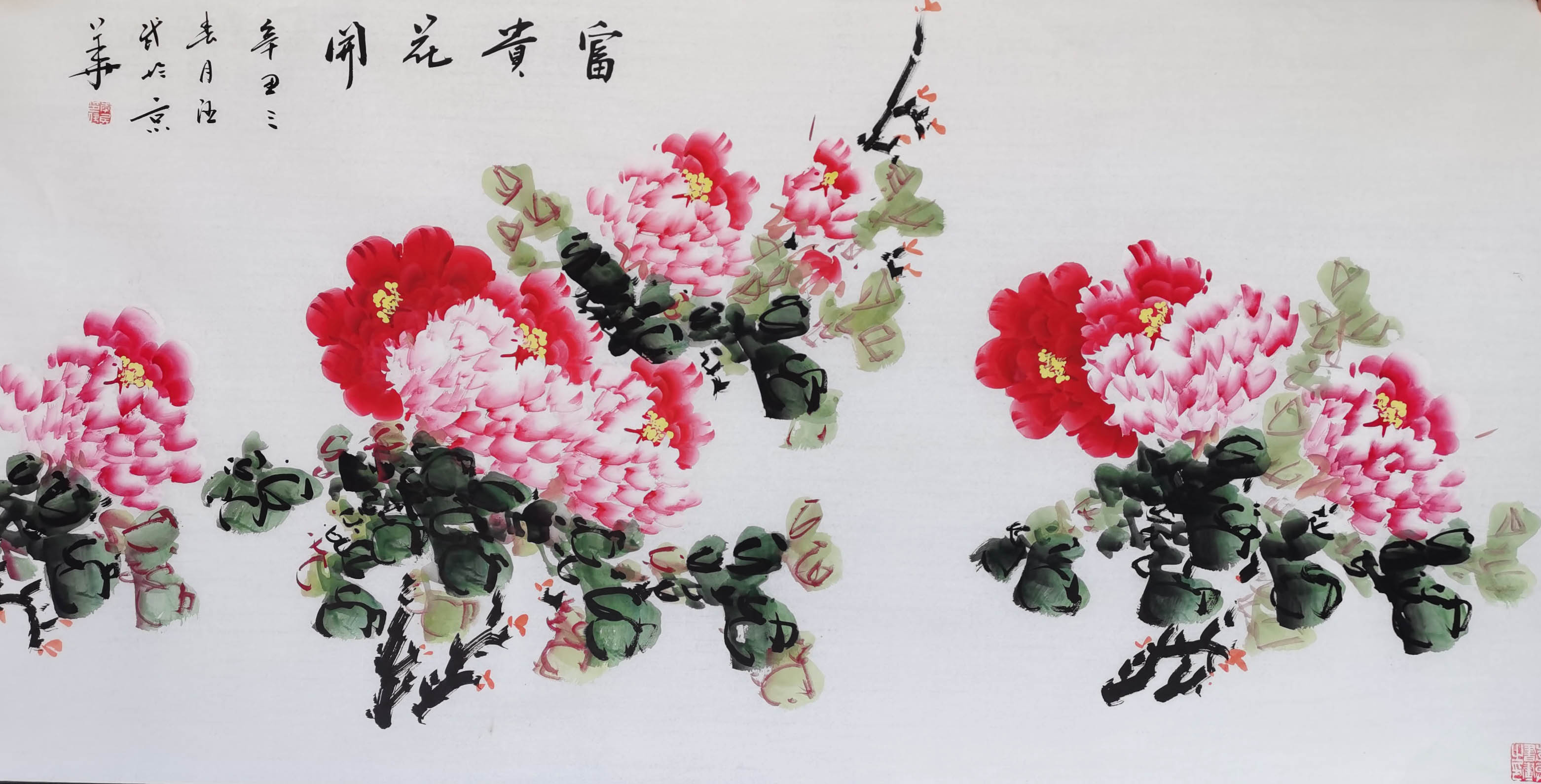 2019 丈二牡丹作品《锦绣中华满堂红》创拍卖记录 770 万成功拍出;