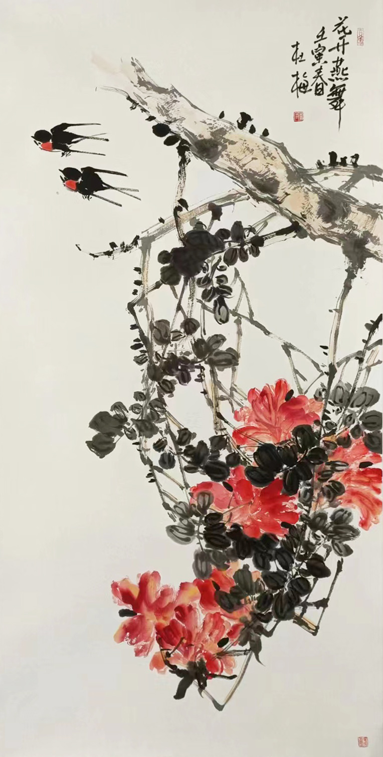 海阔凭鱼跃,天高任鸟飞。我们坚信,杜梅将在中国工笔花鸟画的道路上会走得很远,飞得更高,创作出更多、更美,更新的作品。