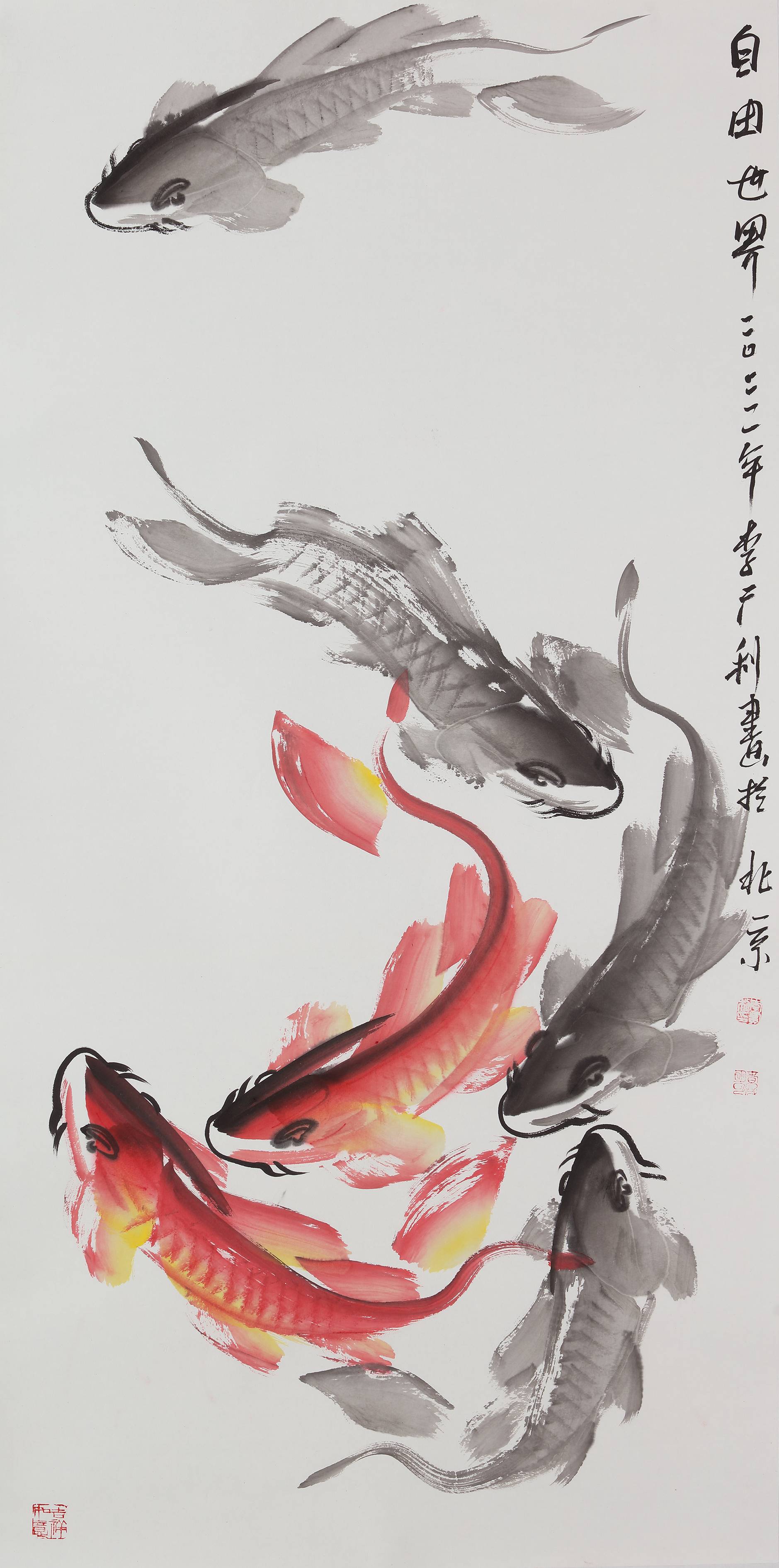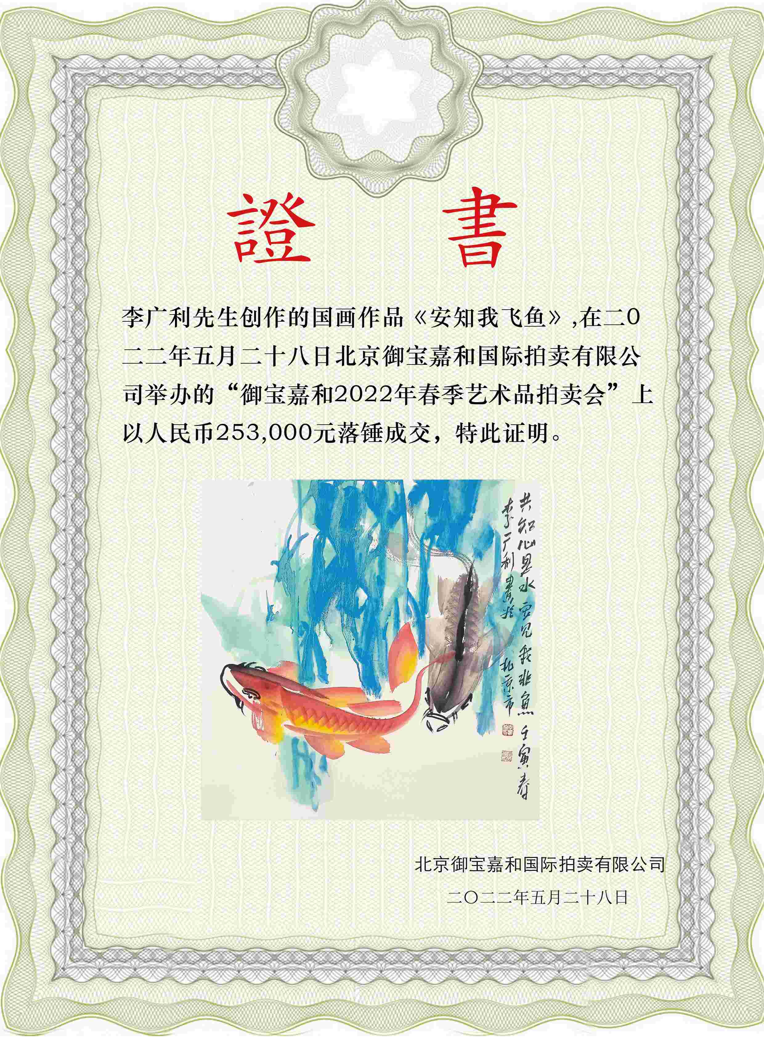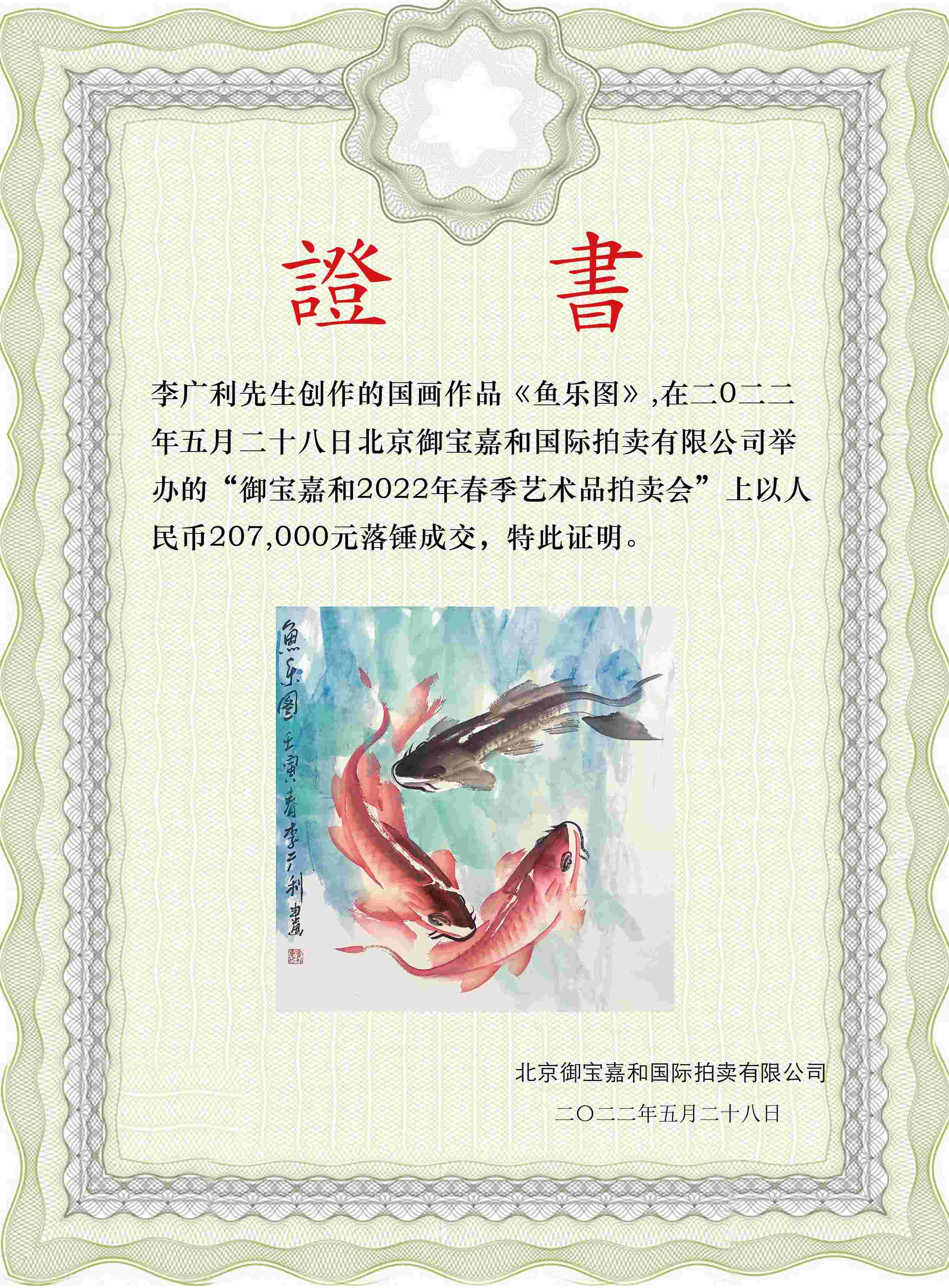 2022年御宝嘉和春季拍卖会136X68cm(眼似珍珠鱼是锦)以92万元成交。