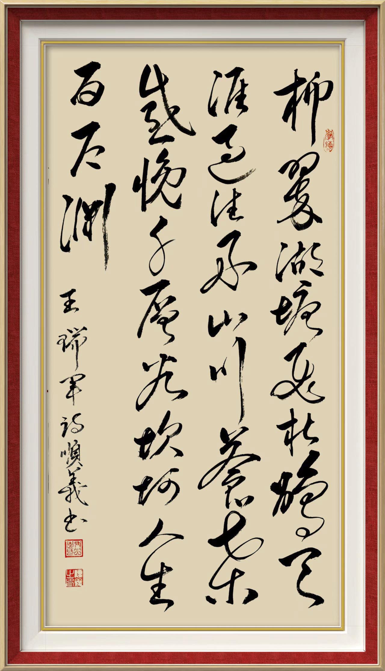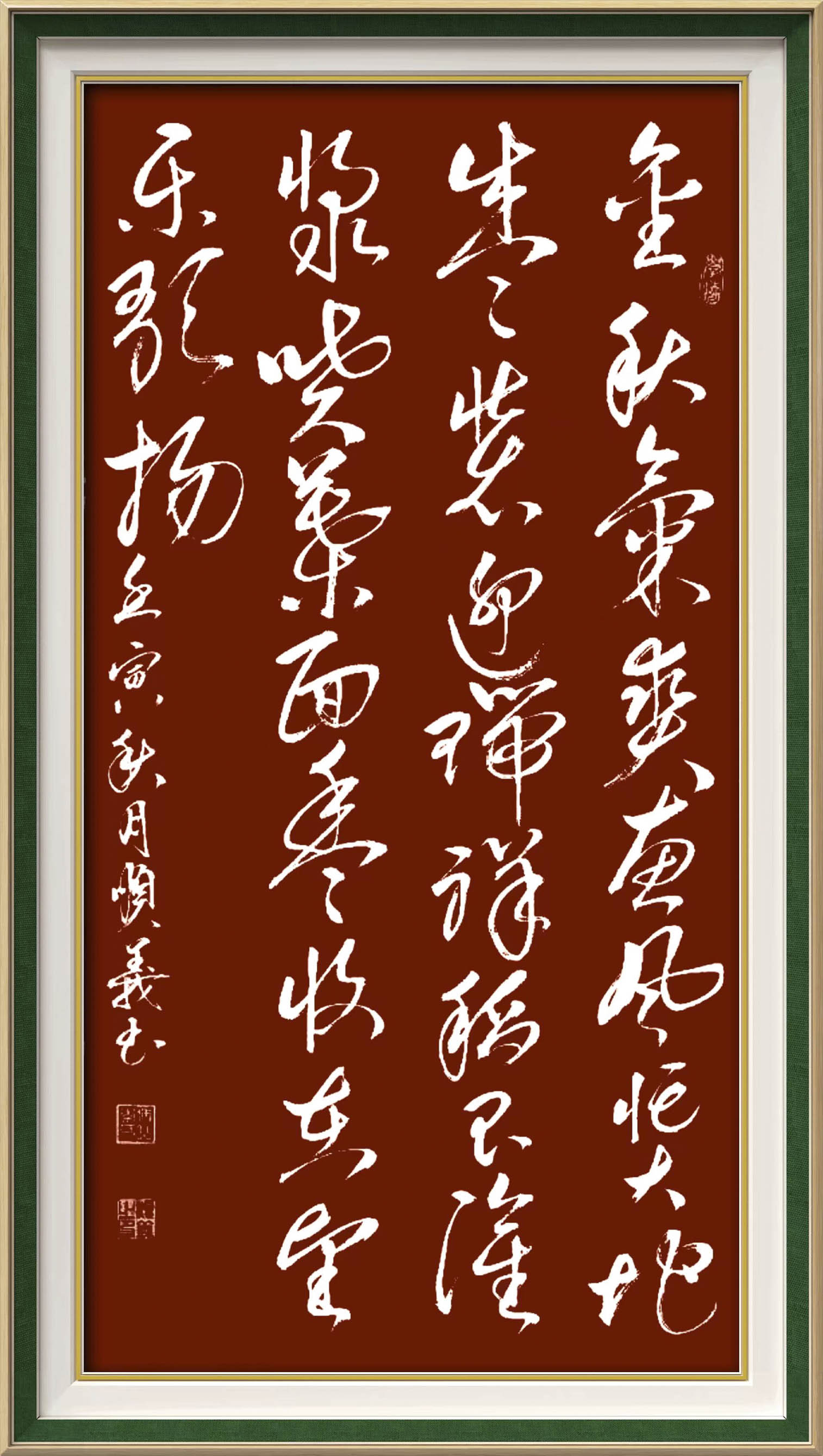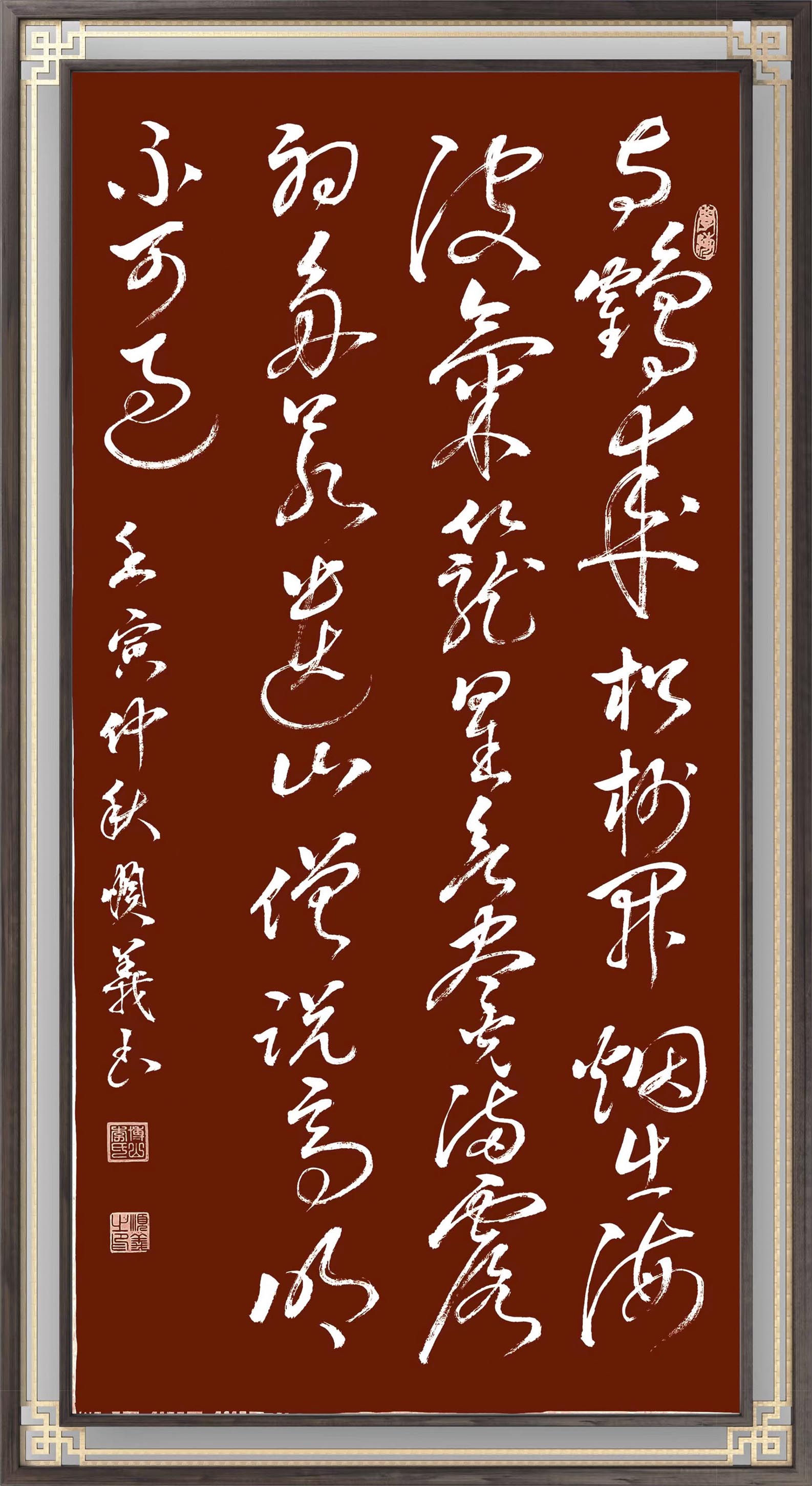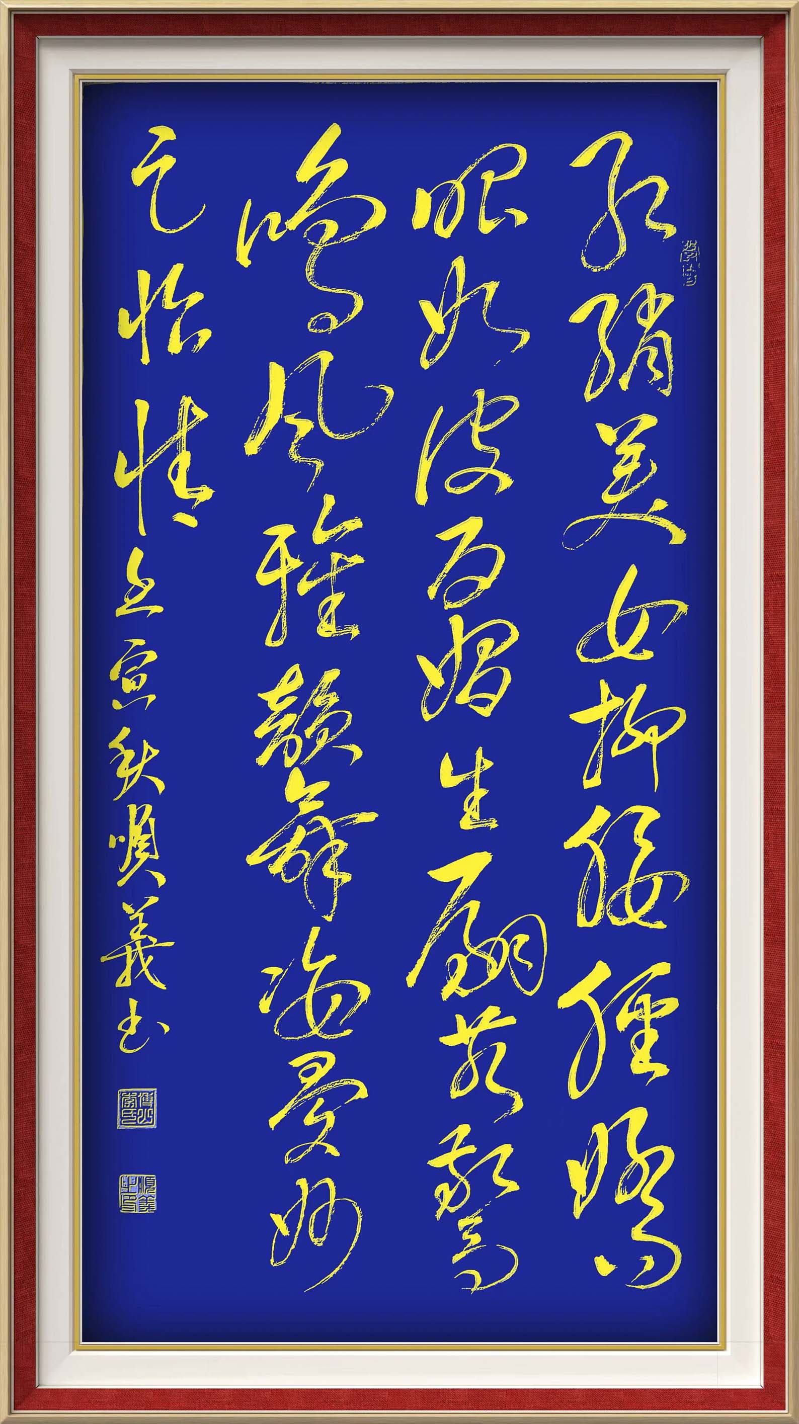 其作品纵横飘逸、含文包质、技法娴熟、结字宽舒、气势奔放、节奏鲜明大气磅礴,作品被各界人士悬挂和收藏。