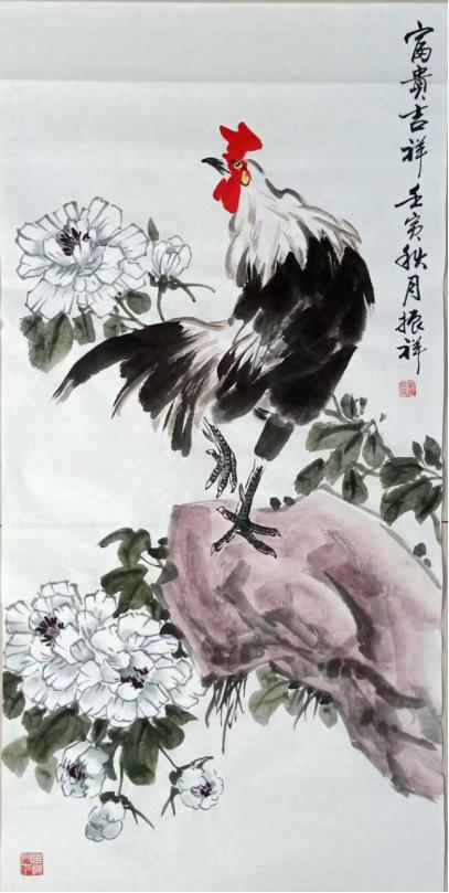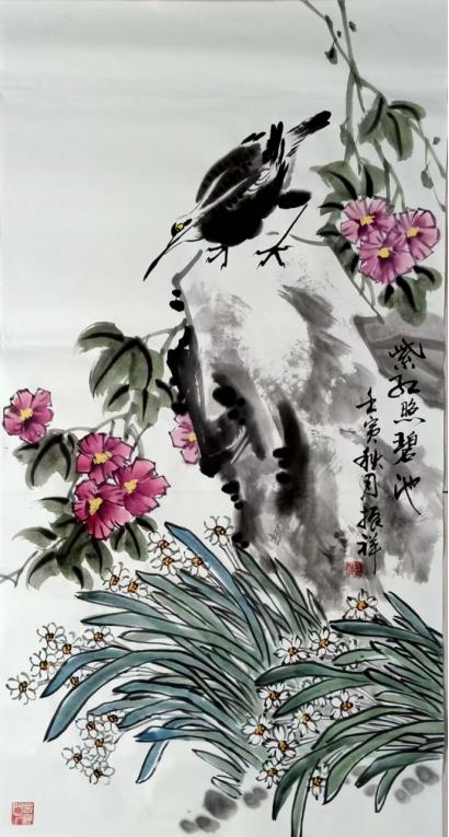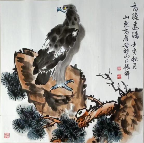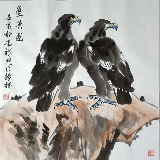 赵振祥先生的笔墨苍劲、浑厚、形神兼备,尤善画苍鹰、鹭鸶、菊花、芭蕉、荷花等,作品多次参加全国美展及报刊发表,流传到美国、加拿大、日本、韩国、港澳门及台湾等国家和地区,被吴昌硕、齐白石等纪念馆收藏。