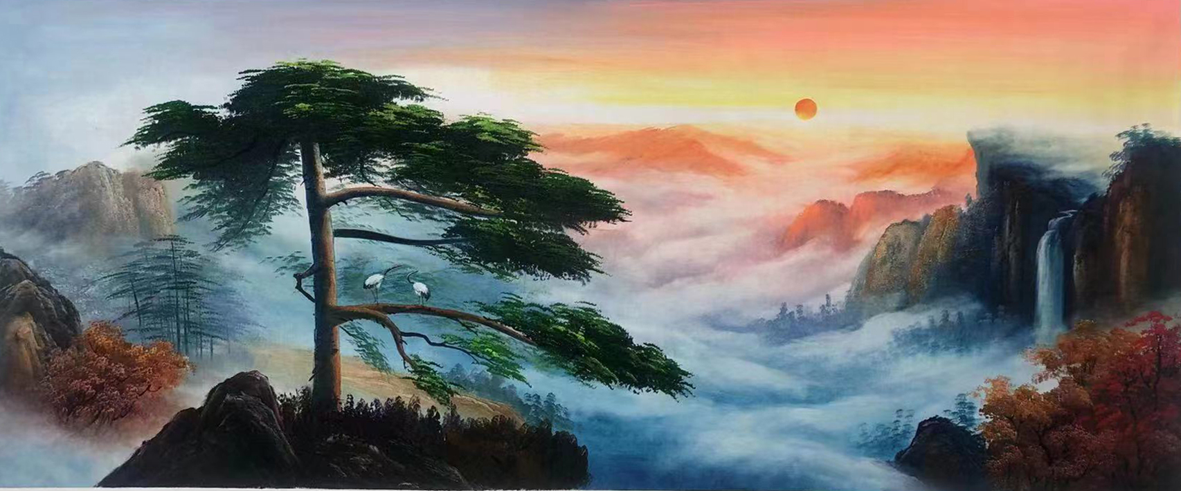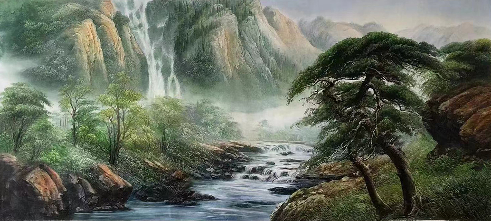 费艳松的画尽态极妍,生面别开,大写意,气旺神畅,笔墨华滋,整个画卷“风卷星河下碧溪”的诗化诠释。她的画用色大胆,触摸弓满月寒,中国画用色,采用的是中国传统颜料,然而在沿用黄宾虹、吴昌硕用色的基础上,与世界绘画史相融入,用色大胆。
