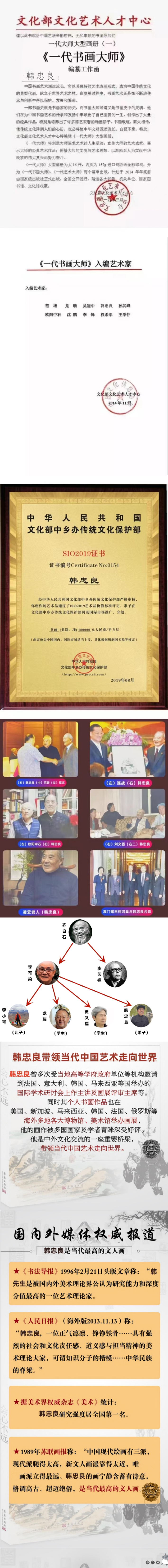 韩忠良先生被誉为中华画坛巨匠,当代艺术大师,著名美术评论家,收藏家,2021年入选《中国艺术家大典》,中国最具收藏价值艺术家,德艺双馨人民艺术家,现为美术学院教授、博士生导师。1992年获英国剑桥世界名人传记中心授予的“世界名人二十世纪成就奖”中国书画函授大学名誉教授。