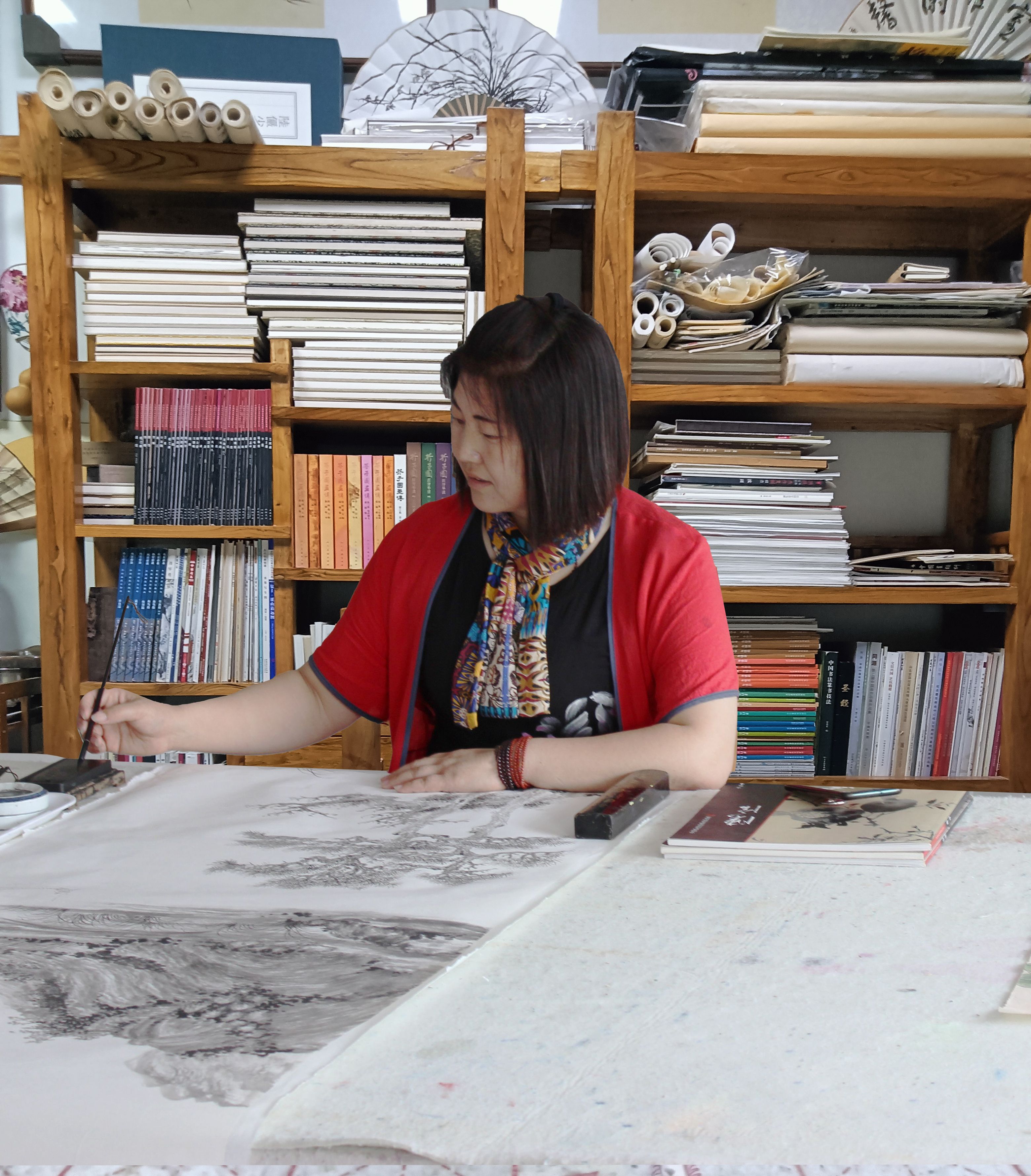 她的家乡位于山水如画的会宝湖畔、匡衡故里。大自然的熏陶,使她自幼酷爱书画,拿起画笔描绘家乡的山、家乡的水,家乡的一草一木、花鸟虫鱼,她把自己完全融入到家乡的烟云山水之中,形成了个人“借物抒情、实意融合”的画风;匡衡“凿壁偷光”的精神,使她铸就了坚韧的性格,在绘画艺海里,执着追求,一丝不苟,精艺求精。