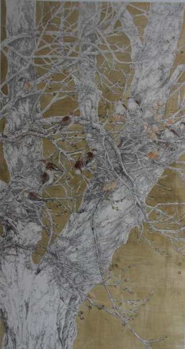 国画《萌春》参展第二十二届山东美术新人新作作品展
