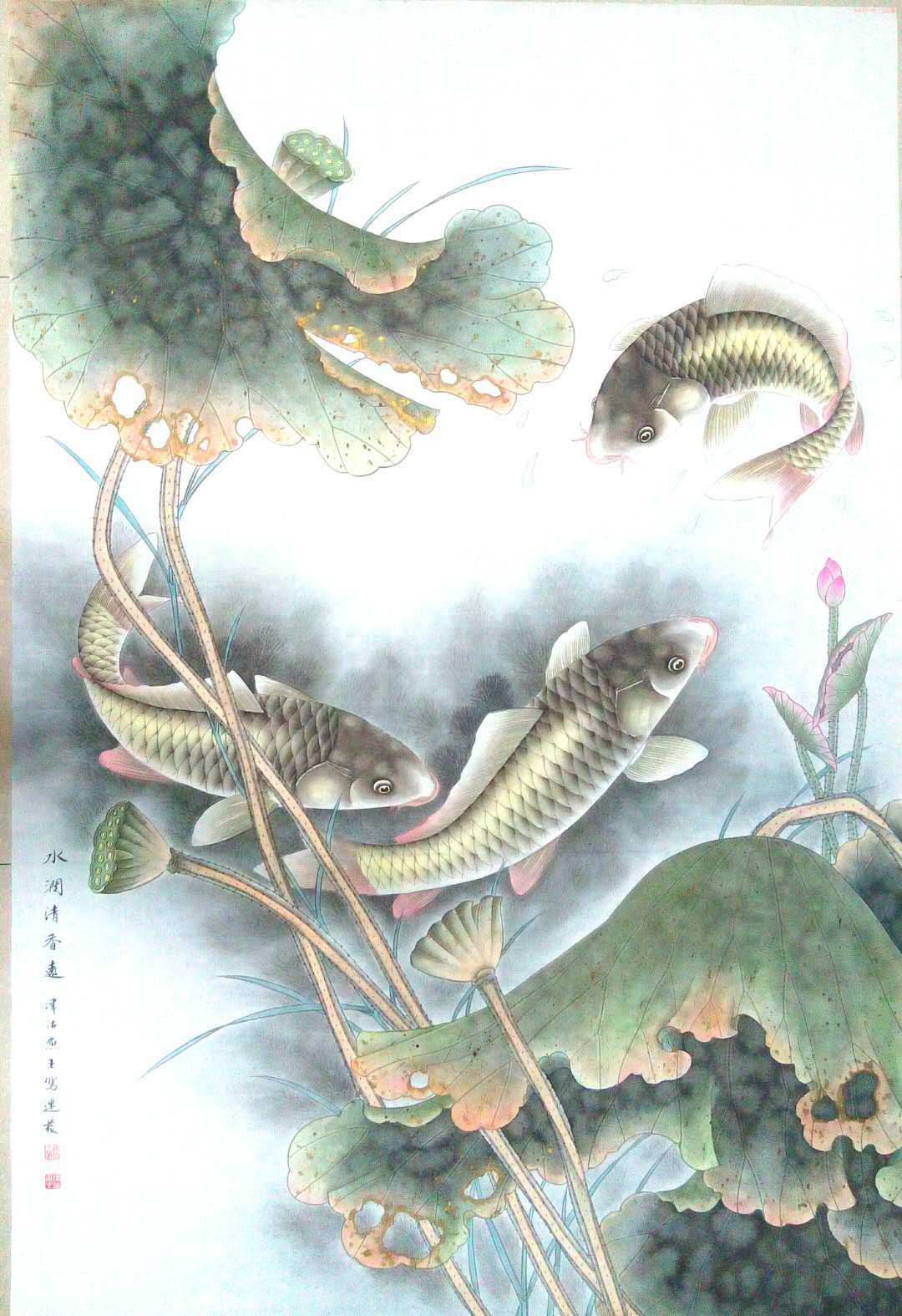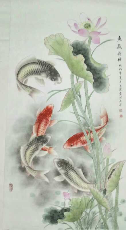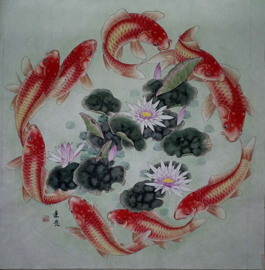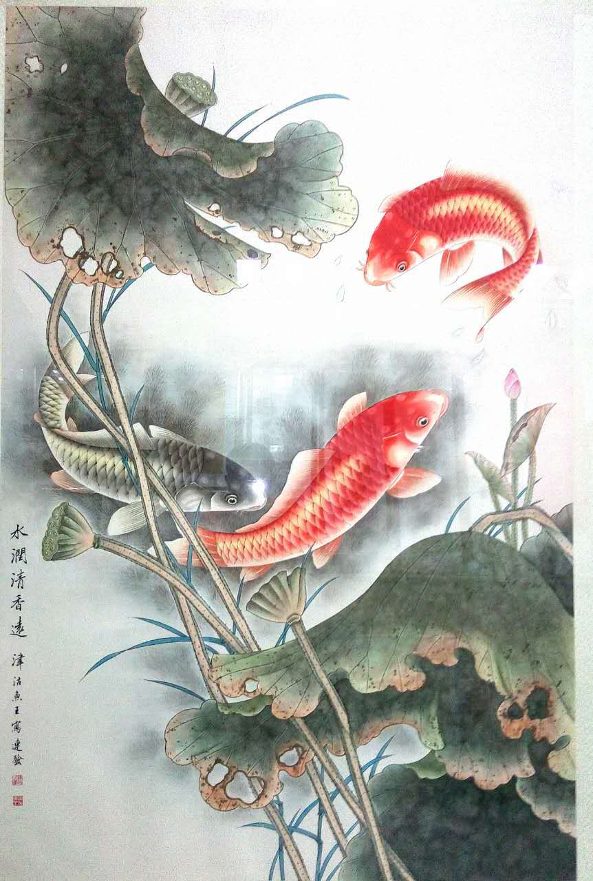 王连发,1954年生人,字妙音,律功居士,国家一级美术师。津门著名画鱼名家,长期孜孜于画事,尤以画鱼类为精绝,所画鱼的质感、神态、活灵活现、富有传统与现代综合之美观之使人身心愉悦,会感到一种自然的理趣,生命的灵动、神、意、趣的交融。作品广被国内外友人收藏。被赞为一《津沽鱼王》。作品数次在国际国内大赛中获奖,曾入选多种刊物。现为中国书法美协名誉主席,台湾故宫博物院名誉院长,天津市美协会员。
