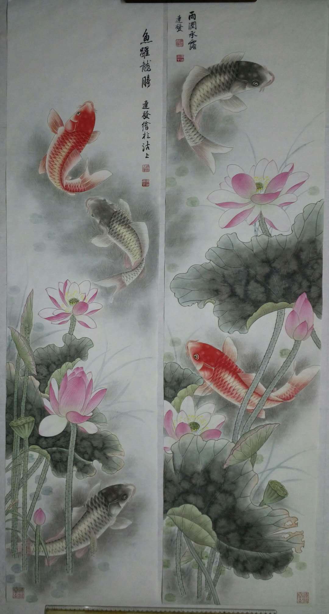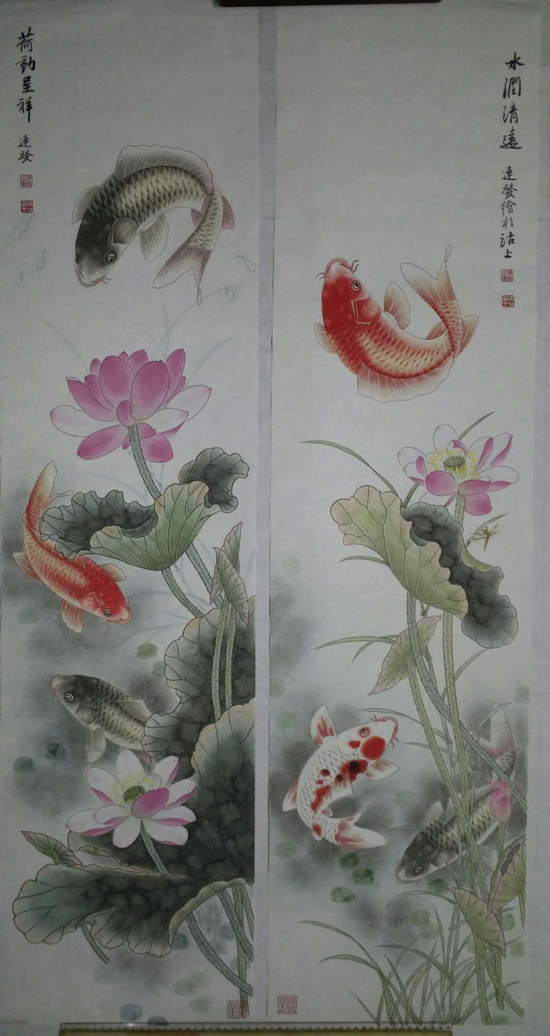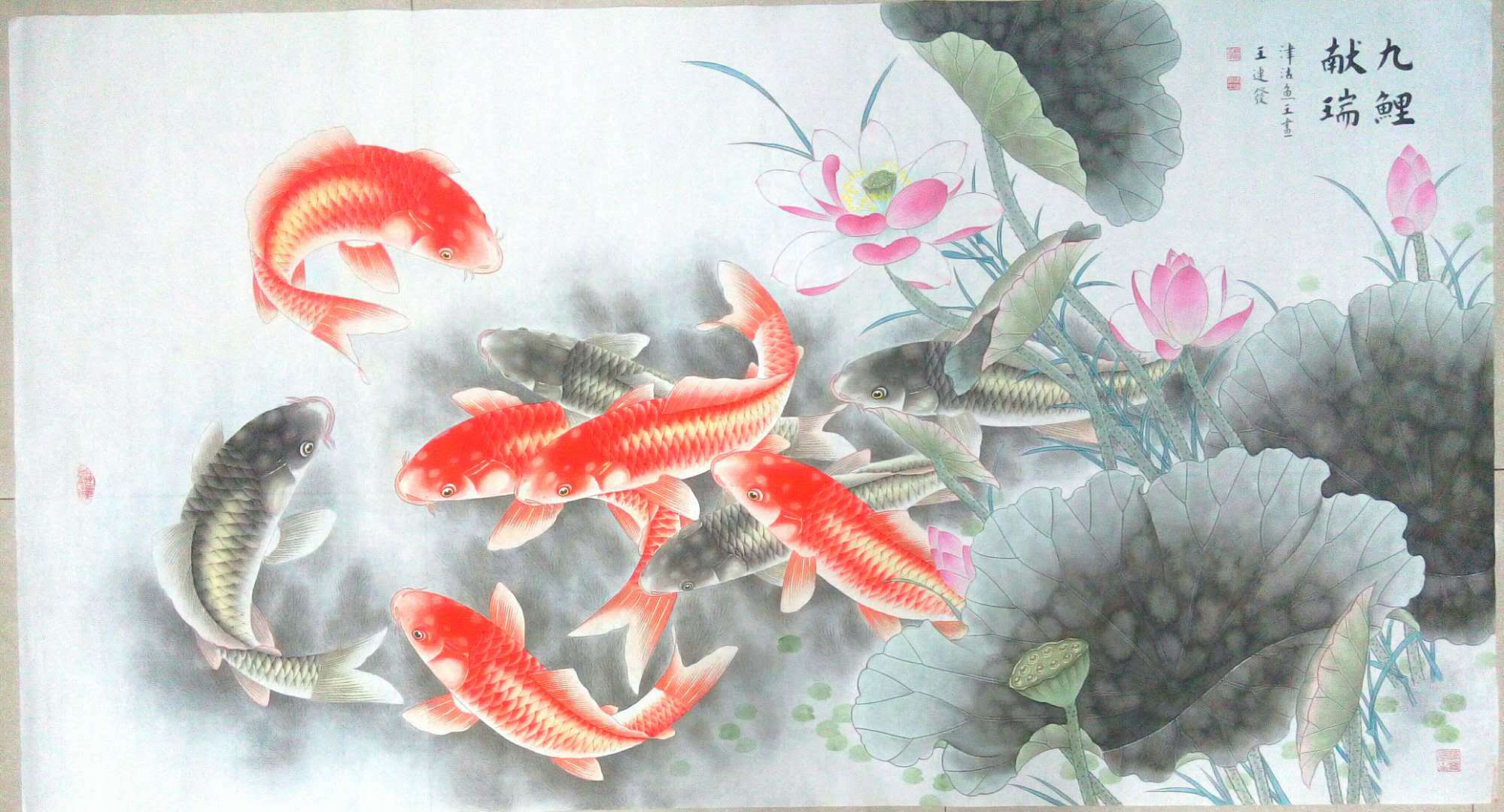 王连发,1954年生人,字妙音,律功居士,国家一级美术师。津门著名画鱼名家,长期孜孜于画事,尤以画鱼类为精绝,所画鱼的质感、神态、活灵活现、富有传统与现代综合之美观之使人身心愉悦,会感到一种自然的理趣,生命的灵动、神、意、趣的交融。作品广被国内外友人收藏。被赞为一《津沽鱼王》。作品数次在国际国内大赛中获奖,曾入选多种刊物。现为中国书法美协名誉主席,台湾故宫博物院名誉院长,天津市美协会员。