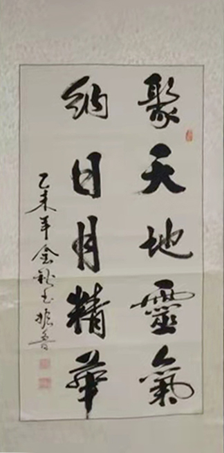 自幼习赵孟頫行楷书,艺术风格刚劲活脱。默默耕耘数六十载,在国内外书展书赛中,多次获等级奖,经不懈努力,获得国家一 级书法师。其书法作品深受国内外书道同仁爱好,有极 高的观赏和收藏价值。