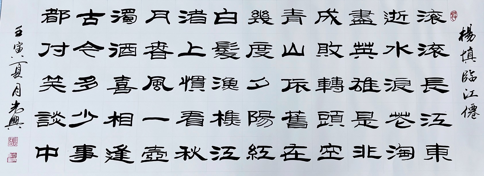 隶书《临江仙》2013年与欧阳中石一同参加古文字书法展入展作品,2018年参加香港秋季拍卖会,以93万的高价被香港知名企业家李嘉诚收藏。