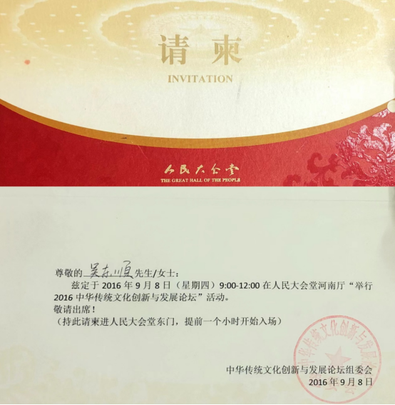 2016年以领军艺术家身份受邀前往人民大会堂参加“中华传统文化创新发展”大会;