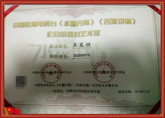 (吴东顺被聘请“中国教育电视台”签约艺术家)