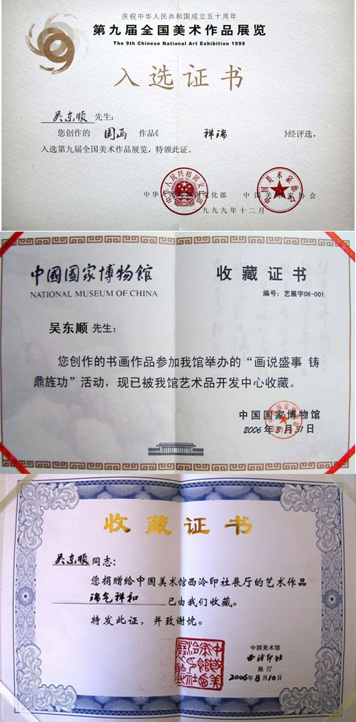 作品《祥瑞》入展第九届全国美术作品展,作品《福禄吉祥》被中国国家博物馆收藏,